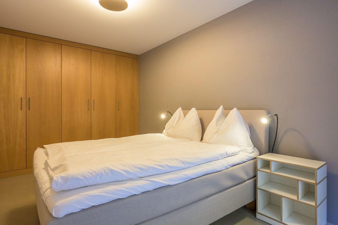 Gemütlicher Wohnraum mit offener, voll ausgestatteter Küche (Geschirrspüler, Herd, Backofen, Kühlschrank, Kaffeemaschine und Kochutensilien), ein Schlafzimmer (ein Doppel-Boxspringbett) und ein Schlafsofa im Wohnzimmer sowie einem Badezimmer mit Dusche und WC. Waschmaschinen und Trockner befinden sich zu gemeinschaftlichen Nutzung im Untergeschoss des Hauses gegen Gebühr. Ein Skiraum sowie ein ein separater Fahrradraum stehen ebenfalls zur Verfügung.