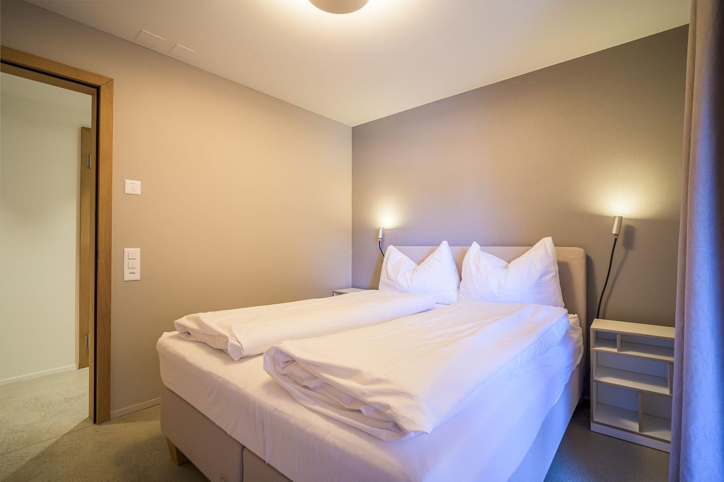 Moderne, helle 3.5-Zimmerwohnung (59?m²) direkt an der Talabfahrt Flims und beim Stenna Center mit Coop, Apotheke, Arzt, Physio, Kino, Restaurants und Shops. Für 4 Personen, mit zwei Schlafzimmern (1x Doppel-Boxspringbett, 2x Einzelbett), Badezimmer mit Walk-In Dusche, sep. WC. Offener Wohnraum mit voll ausgestatteter Küche (Geschirrspüler, Herd, Backofen, Kühlschrank, Kaffeemaschine). Waschmaschine & Trockner inklusive.