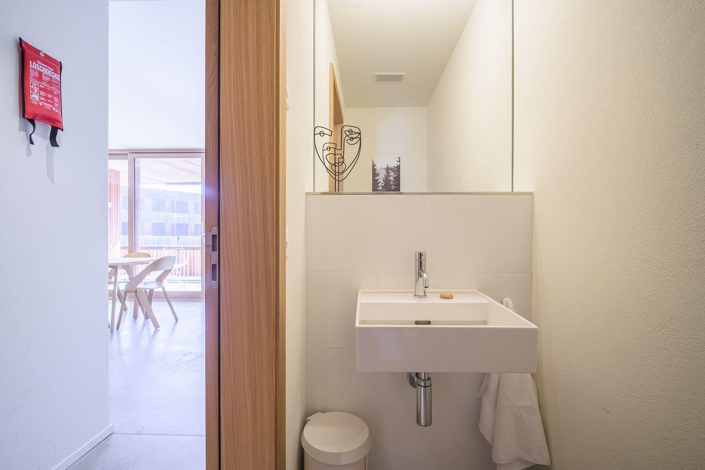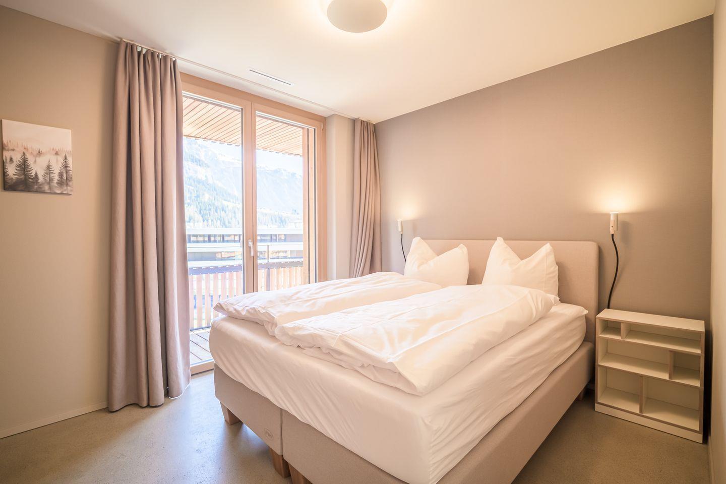 Moderne 3.5-Zimmerwohnung (59?m²) für 4 Personen mit 29?m² Terrasse, direkt an der Talabfahrt Flims und beim Stenna Center. Coop, Apotheke, Arzt, Physio, Restaurants, Cafés, Shops und Kino in der Nähe. Nur wenige Schritte zu den Bergbahnen. Gemütlicher Wohnraum mit offener, voll ausgestatteter Küche (Geschirrspüler, Herd, Backofen, Kühlschrank, Kaffeemaschine). 2 Schlafzimmer (1 Doppelbett, 2 Einzelbetten) und modernes Bad mit Walk-In Dusche. Waschmaschine und Trockner im Haus (gegen Gebühr).