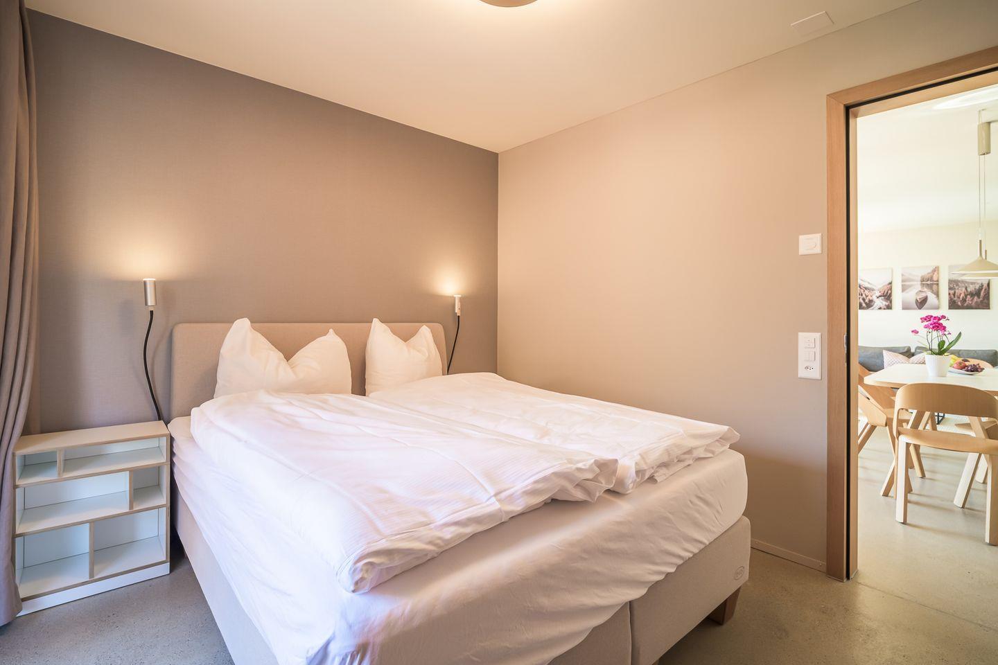 Die Wohnung bietet zwei Schlafzimmer, eines mit einem Doppel-Boxspringbett und das zweite mit zwei Einzelbetten. Ein modernes Badezimmer mit einer Walk-In Dusche sorgt für höchsten Komfort, zusätzlich gibt es eine separate Toilette.