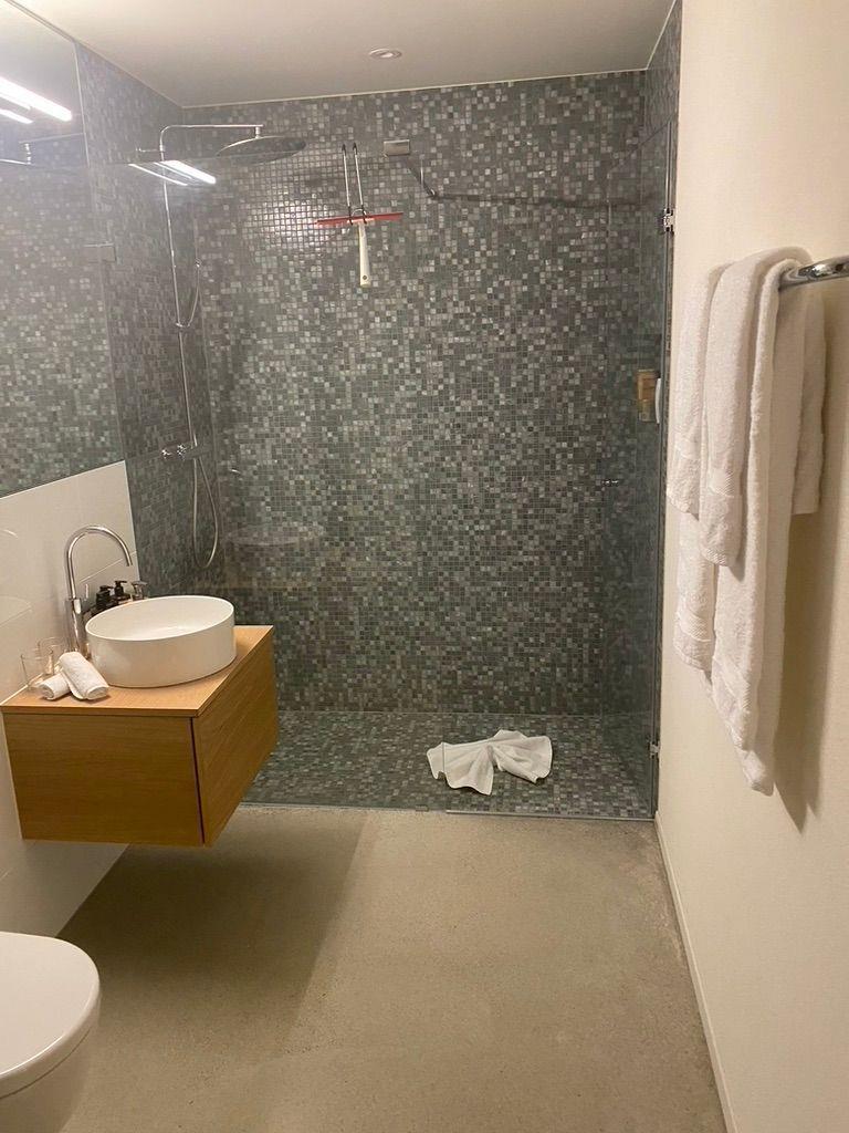 Das Badezimmer ist mit einer Dusche ausgestattet.
