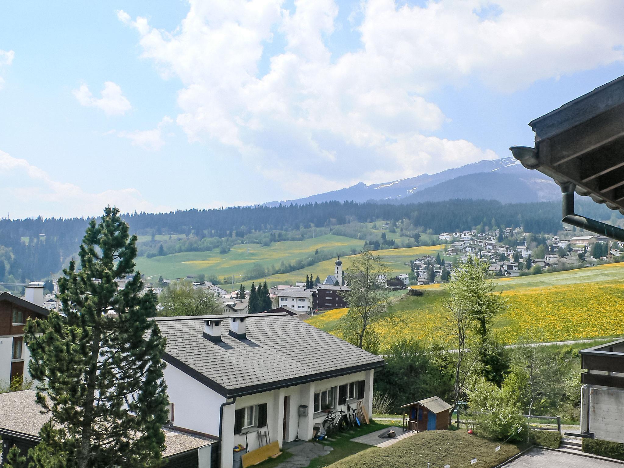Flims 21 km from Chur: Apartment house "Valetta Sura", 3 storeys, surrounded by trees and meadows. On the outskirts, 600 m from the centre of Flims Dorf, in the district Surselva, in a quiet, sunny, elevated position, 1 km from the skiing area, in a cul-de-sac, in the countryside. For shared use: property. In the house: storage room for skis, central heating system, washing machine (for shared use). Steep motor access to the house. 4x4 car recommended in winter. Single garage at the house, public parking 300 m. Parking space or garage only for small to medium-sized cars. Dimension: height 195 cm width 235 cm. Shop, grocery, restaurant 500 m, bakery, café 600 m, 3 minute walk to the centre, bus stop "Flims Dorf, Post" 450 m, railway station "Chur" 24 km. Golf course (18 hole) 9.1 km, walking paths from the house 100 m, chair lift 1 km, skisport facilities 1 km, slopes 1 km, sled run 500 m, cross country ski track 1 km, ice rink 1 km, children's playground 500 m. Nearby attractions: Rheinschlucht, Chur. Well-known ski regions can easily be reached: Flims - Laax. Well-known lakes can easily be reached: Crestasee, Caumasee. Hiking paths: Ela Parc.