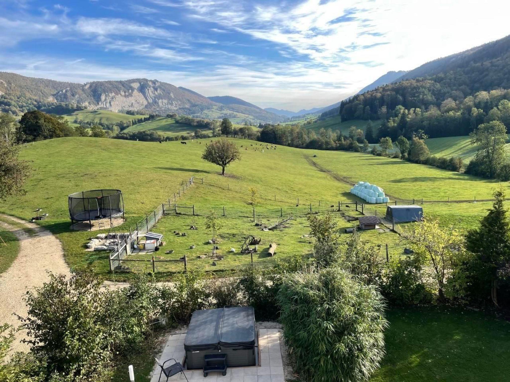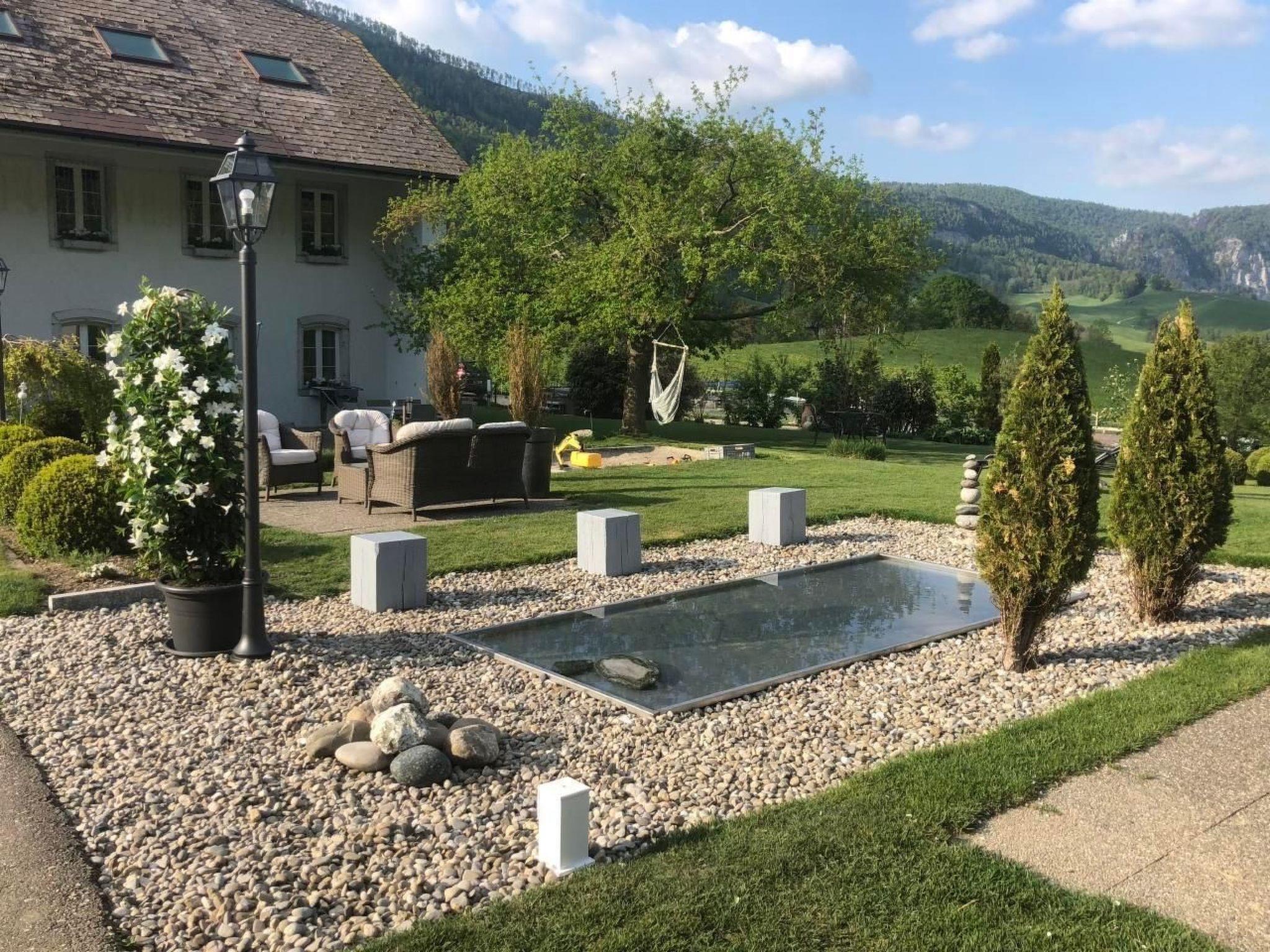 Do you want to experience peace and nature? Welcome to our farm! Surrounded by woods and meadows, our farm lies at the foot of the Weissenstein. Cosy spots in the beautiful park invite you to linger. A visit to the sauna or whirlpool is well worthwhile. Free-roaming rabbits live in the park and many different animals enrich your stay. The Jura heights are ideal for hiking and biking. You can walk through the forest directly from the farm to the Weissenstein in about 1-1.5 hours. The baroque town of Solothurn can be reached by train in 30 minutes (the tunnel will be renovated from March 24). The Sikypark (zoo) is 3 km away. Nearest shopping facilities are 3.5 km away. Car is an advantage. Renovated, bright flat on the 1st floor with dishwasher, new kitchen & bathroom, Delizio coffee machine...The bathroom is accessible via a small corridor, is outside the flat but of course for exclusive use. The marvellous view is waiting for you! Dogs are welcome on request. A warm welcome!