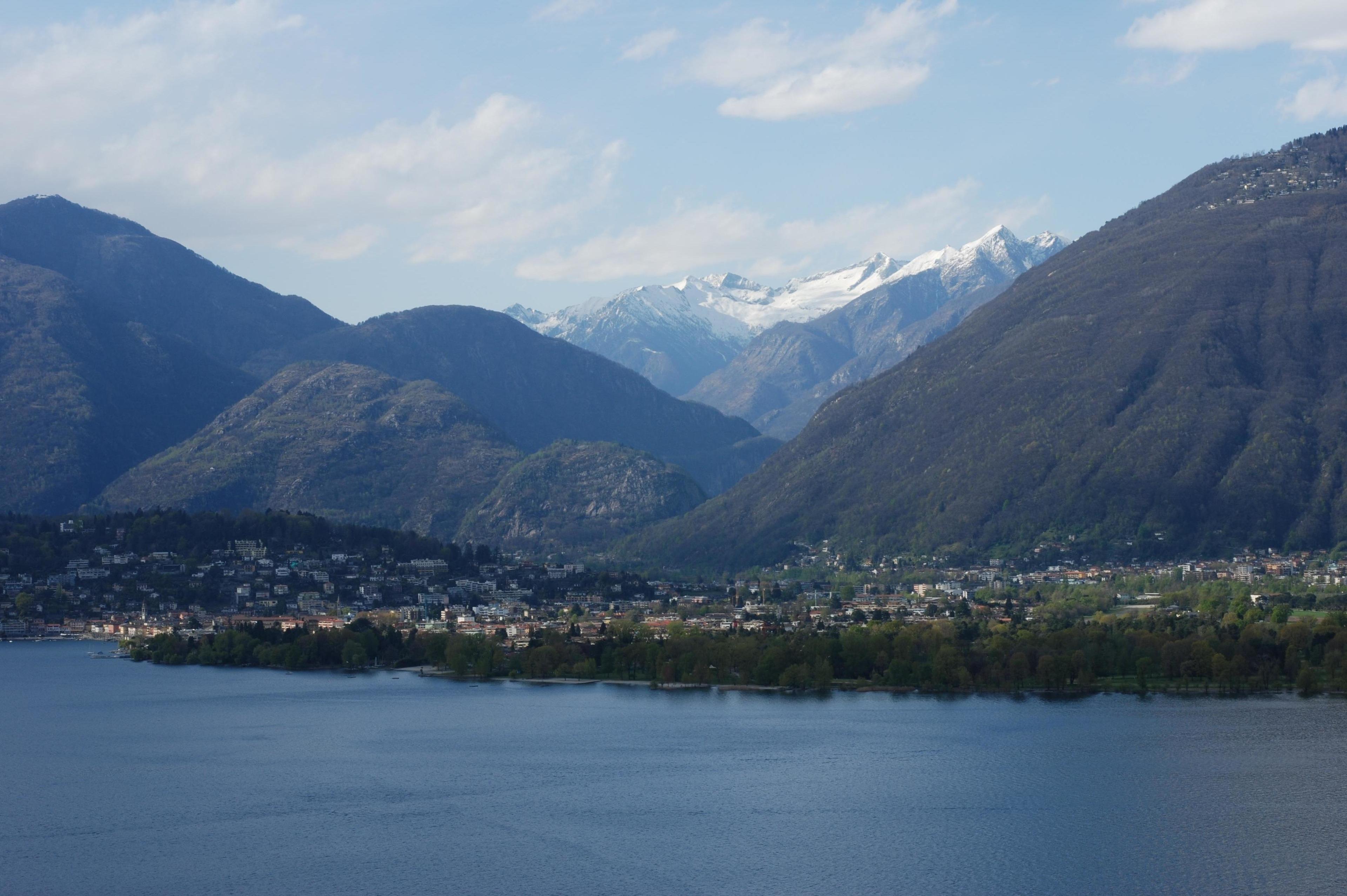 Balkon: Ca. 12 m2, mit Sitz- und Essgelegenheit und herrlicher Sicht auf den Lago Maggiore. Liegestühle und Sonnenschirme sind vorhanden.