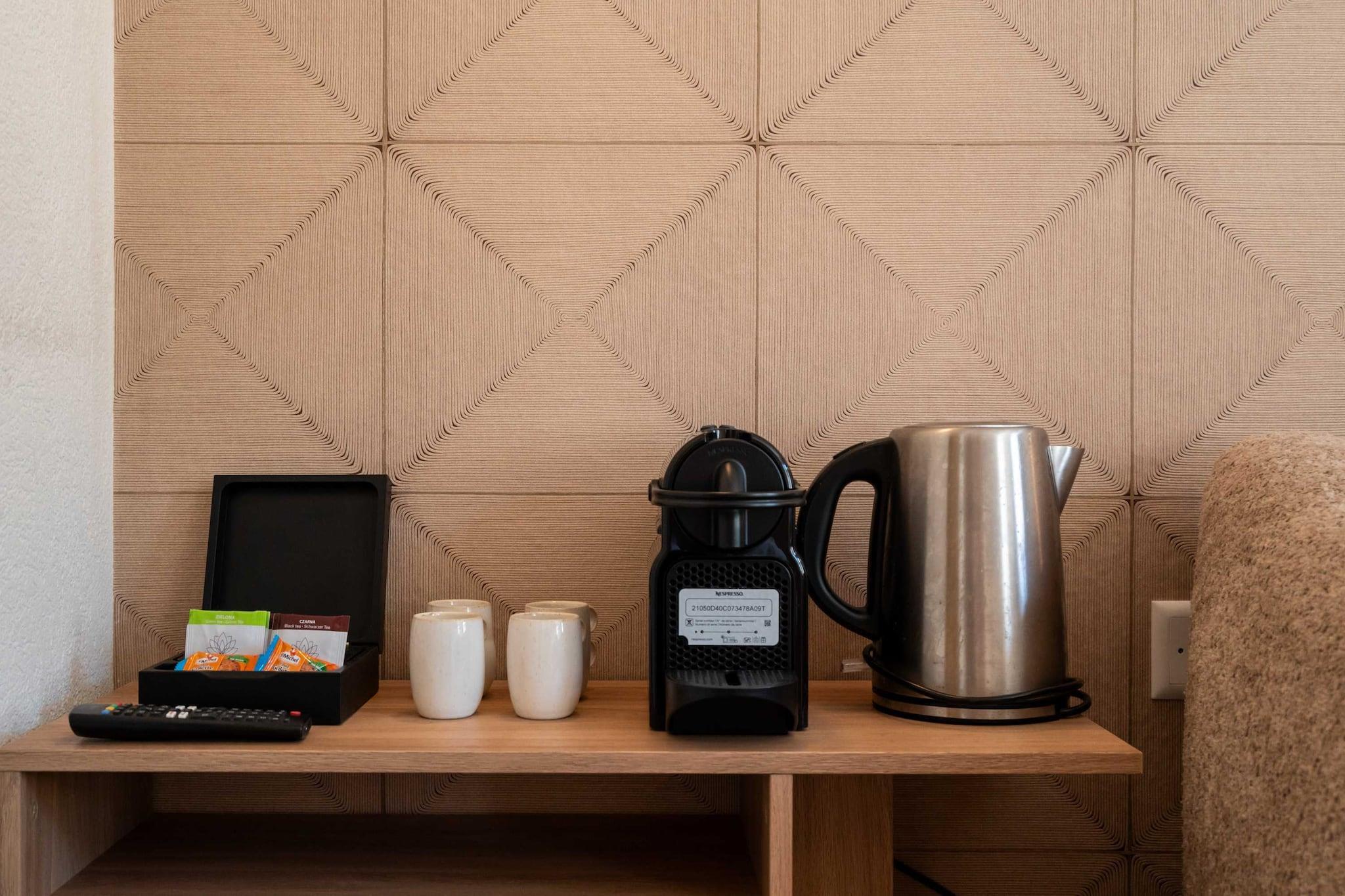 On the 3rd floor: (Living room(double sofa bed, TV(flatscreen)), Kitchen(dining table, hob, electric kettle, coffee machine, combination microwave, fridge, electric hot plates, dishes and cutlery, Cooking basics, Wine glasses), bedroom(single bed, single bed, TV), bathroom(toilet, hairdryer, shampoo, body soap, hot water)) bathroom(shower, toilet)