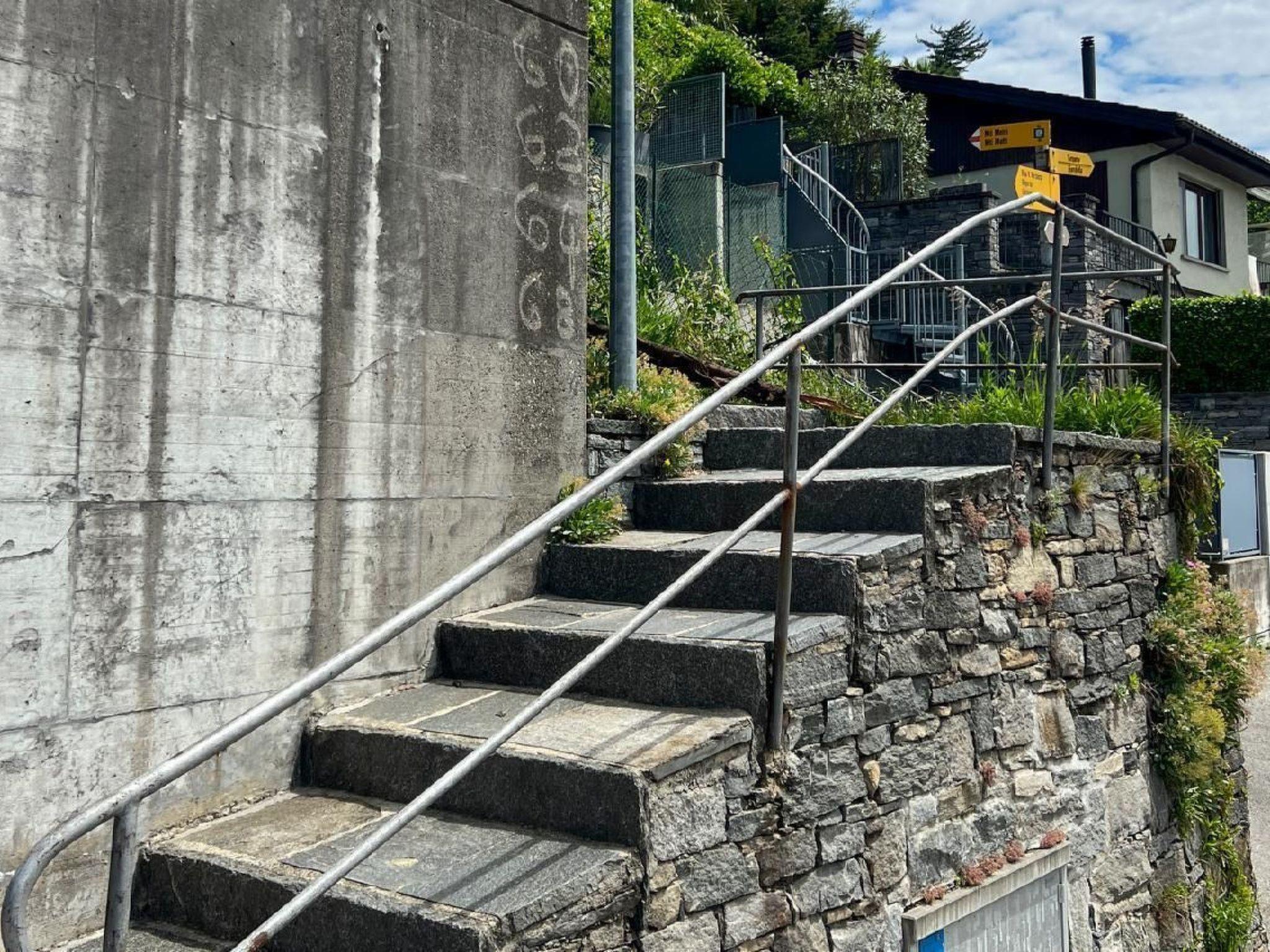 Renovated in 2021, the studio is a granny flat in a holiday home and has a small, well-equipped kitchenette as well as a shower and WC. The covered seating area offers a fantastic view over Lake Maggiore as far as Italy. In summer, a small pool, which is shared with the upper flat, provides refreshing moments. The surrounding area with vineyards, natural stone walls and small squares creates a peaceful atmosphere at any time of day.