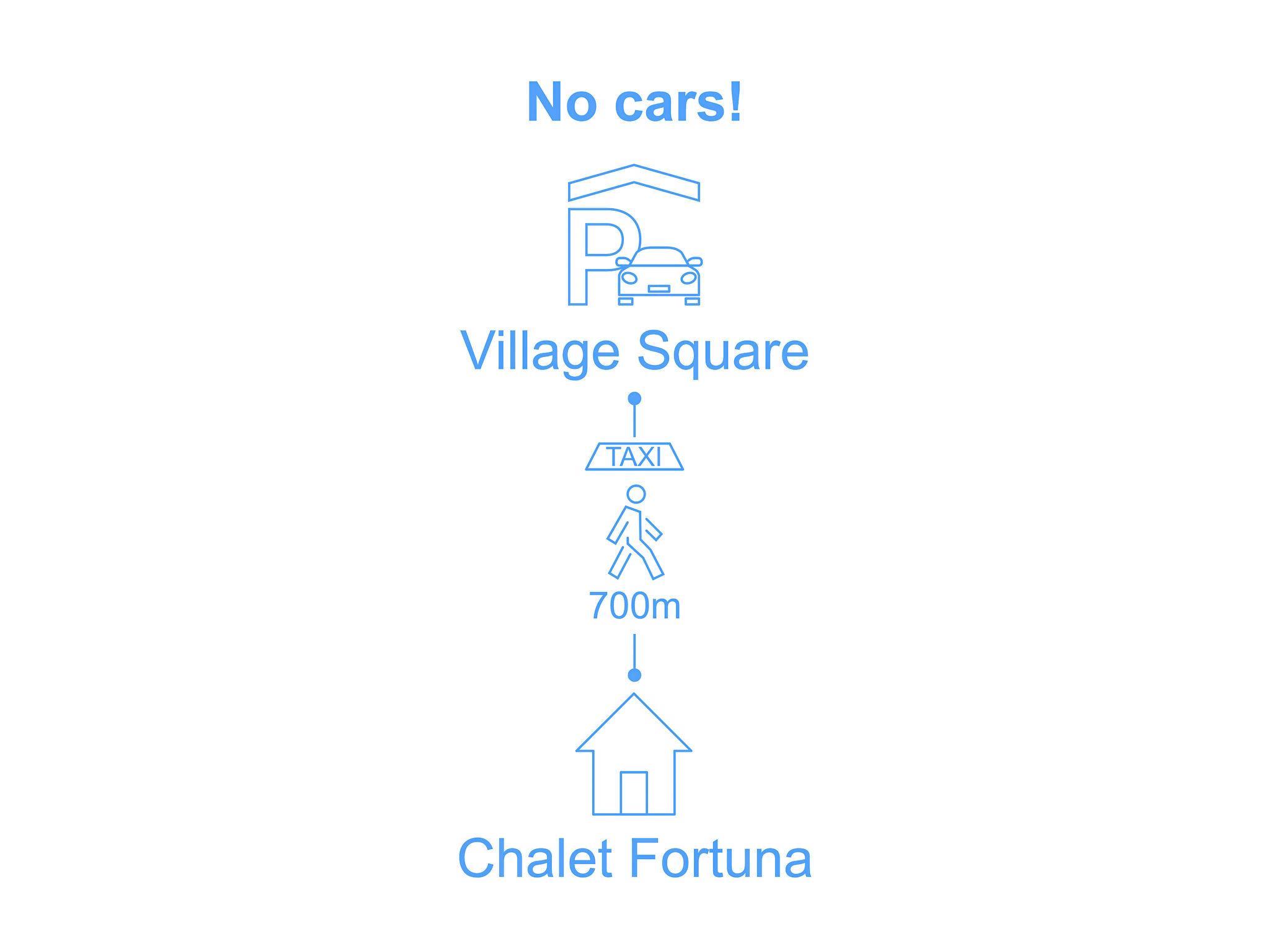 Cosy, rustic chalet "Fortuna", 1'650 m a.s.l., 3 storeys. On the outskirts, 700 m from the centre, in a quiet, sunny position, 700 m from the skiing area. For shared use: garden, lawn for sunbathing. In the house: storage room for skis, central heating system, washing machine (for shared use). Motor access to 700 m from the house. 700 m footpath to the house. Public parking 700 m. Shop, grocery 700 m, restaurant 200 m, bus stop 700 m, indoor swimming pool 100 m. Tennis 600 m, ski lift, gondola lift, skisport facilities, slopes, ski school, sled run 700 m, ice rink, children's playground 500 m. Please note: car-free holiday complex. Luggage can be transported (extra) by electric taxi from the village square / parking garage (extra) to the house.