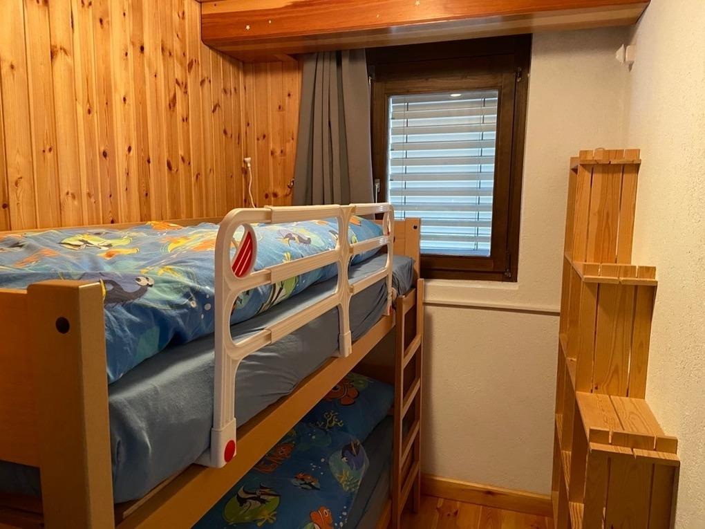 Die Wohnung verfügt über ein geräumiges Schlafzimmer mit Doppelbett, sowie einem kleinen Schlafzimmer mit Stockbett.