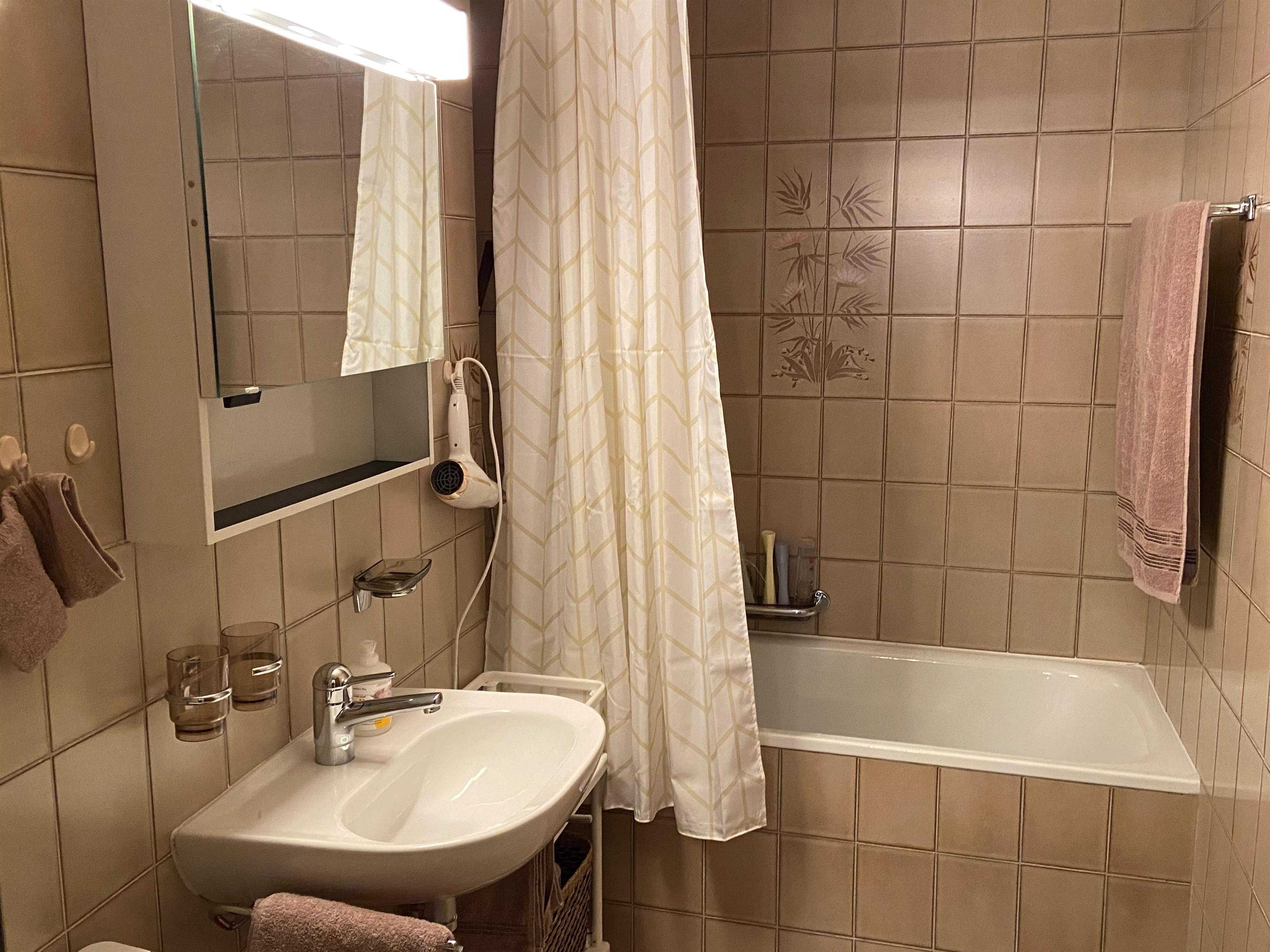 Das Wohn- /Esszimmer verfügt über ein Schlafsofa, TV/Sat, DVD Player mit einigen Kinderfilmen. Das Badezimmer ist ausgestattet mit Badewanne, Fön, Waschbecken und Toilette. In der gesamten Wohnung ist kostenloses Wlan. Der Südbalkon bietet einen schönen Blick auf die wunderschöne Bergwelt.