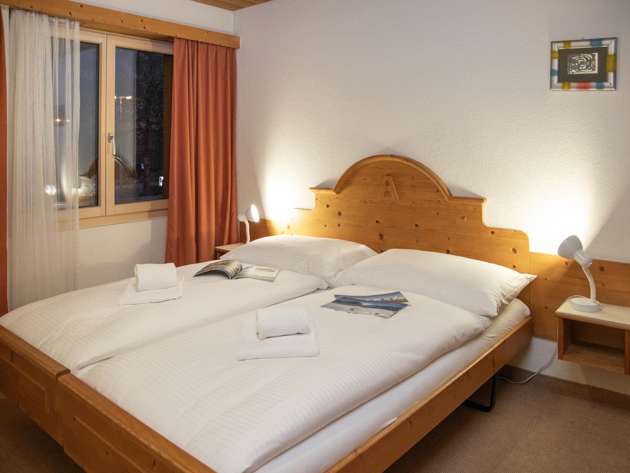 2-room apartment 64 m2 on 1st floor, south facing position. Living/dining room with 2 beds and cable TV (flat screen). 1 double bedroom. Open kitchen (oven, 4 ceramic glass hob hotplates, kettle, electric coffee machine). Bath/WC. Small balcony, south facing position. Balcony furniture. Beautiful view of the mountains and Eiger. Facilities: hair dryer. Internet (WiFi, free). Please note: non-smokers only. Maximum 1 pet/ dog allowed. A fondue set (meat or cheese) and a raclette oven can be borrowed from reception.