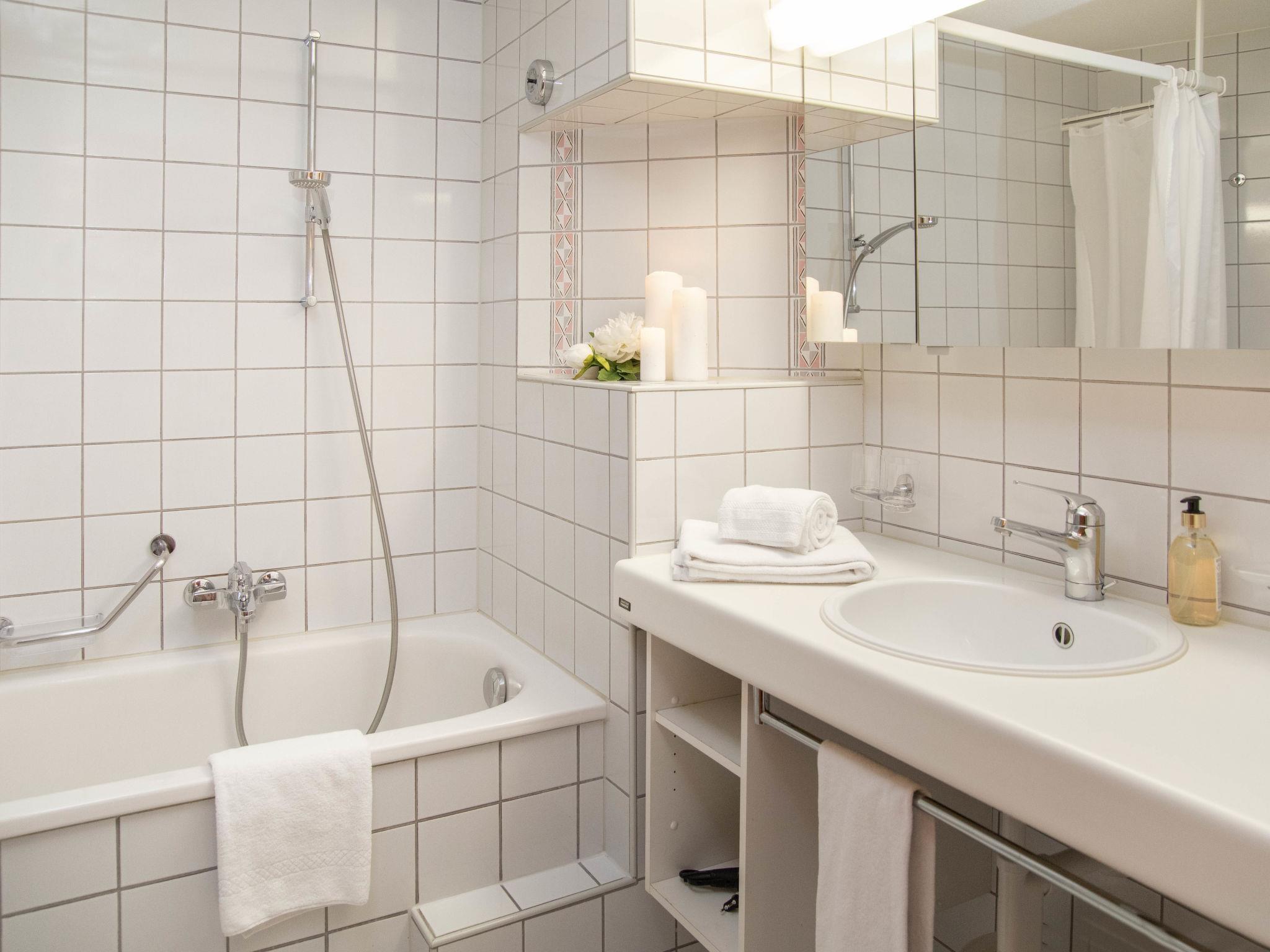 3-room apartment 64 m2 on 3rd floor, east facing position. Living/dining room with cable TV (flat screen). 2 double bedrooms. Open kitchen (oven, dishwasher, 4 ceramic glass hob hotplates, toaster, kettle, electric coffee machine). Bath/WC, sep. WC. 2 balconies, east facing position. Terrace furniture. View of the mountains. Facilities: hair dryer. Internet (WiFi, free). Please note: non-smokers only. Maximum 1 pet/ dog allowed. A fondue set (meat or cheese) and a raclette oven can be borrowed from reception.