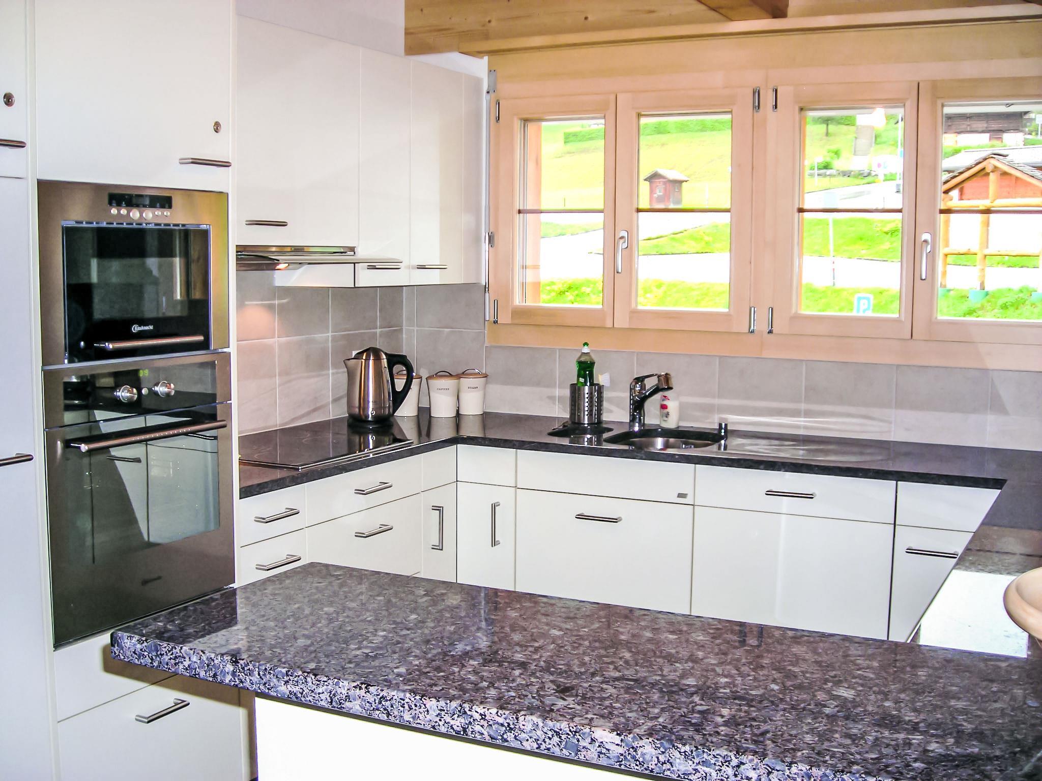 5-room apartment 130 m2, on the top floor, south facing position. Partly with sloping ceilings, tasteful and cosy furnishings: living/dining room with sloping ceilings with Scandinavian wood stove and satellite TV (flat screen), hi-fi system. Exit to the balcony, south facing position and west facing position. 1 room with 2 beds (90 cm, length 200 cm). Exit to the balcony. 1 room with 1 french bed (160 cm, length 200 cm). Exit to the balcony. 1 room with 2 beds (90 cm, length 200 cm), shower/WC. Exit to the balcony. 1 small room 10 m2, with sloping ceilings with 2 beds (90 cm, length 200 cm). Open kitchen (oven, dishwasher, 4 ceramic glass hob hotplates, electric coffee machine, Capsules for coffee machine (Nespresso) extra, raclette grill, fondue Set (cheese)). Bath/WC, shower/WC. Underfloor heating. Natural stone floors. Large balcony, south facing position and west facing position balcony, east facing position. Balcony furniture. Marvellous view of the mountains and Eiger. Facilities: hair dryer, logs (extra). Internet (WiFi, free). Parking space n Besucher, garage space n 6 & 7 (2 cars) at the house, height 200 cm. Please note: non-smokers only. Fire extinguisher, no lift.