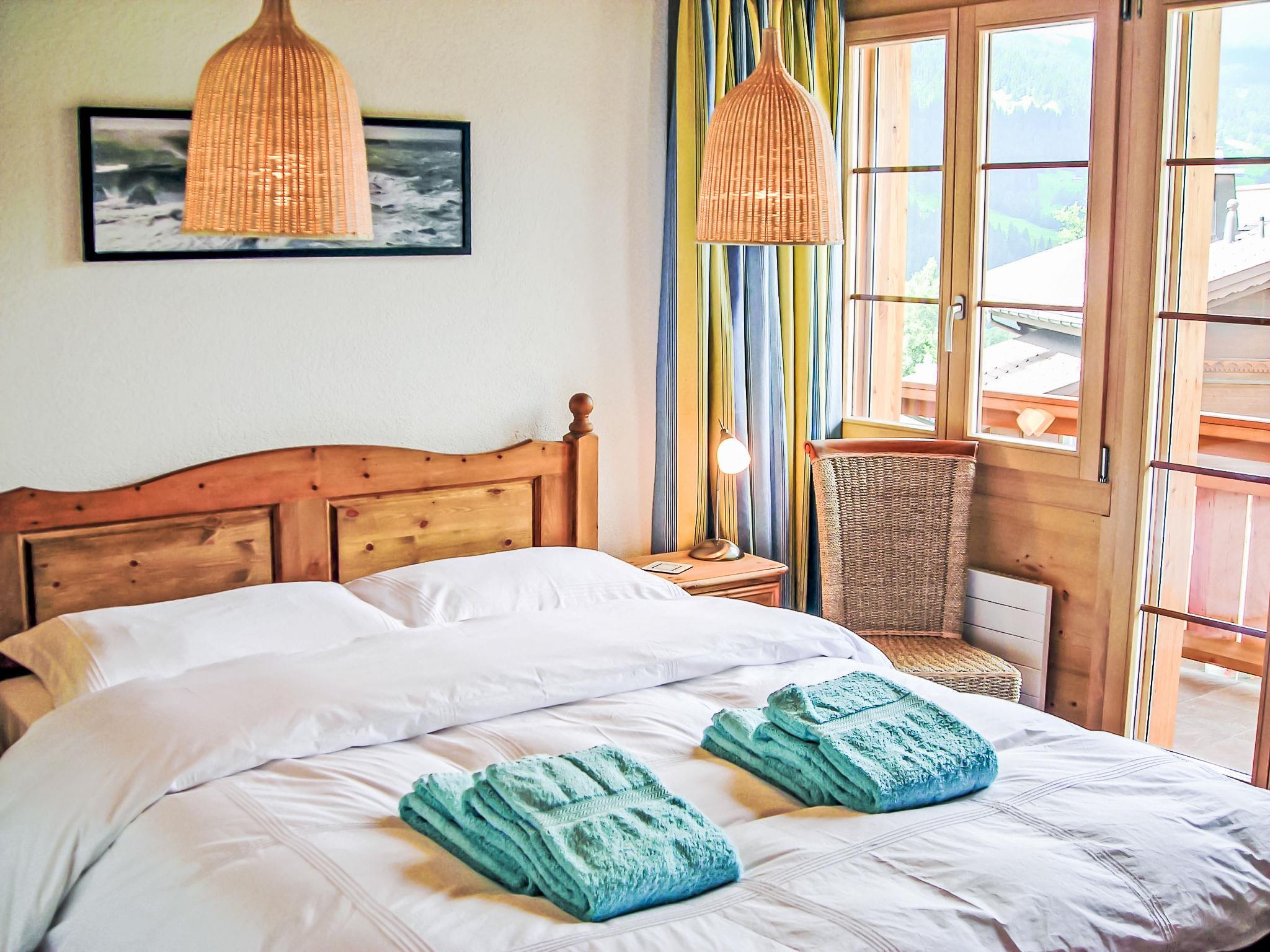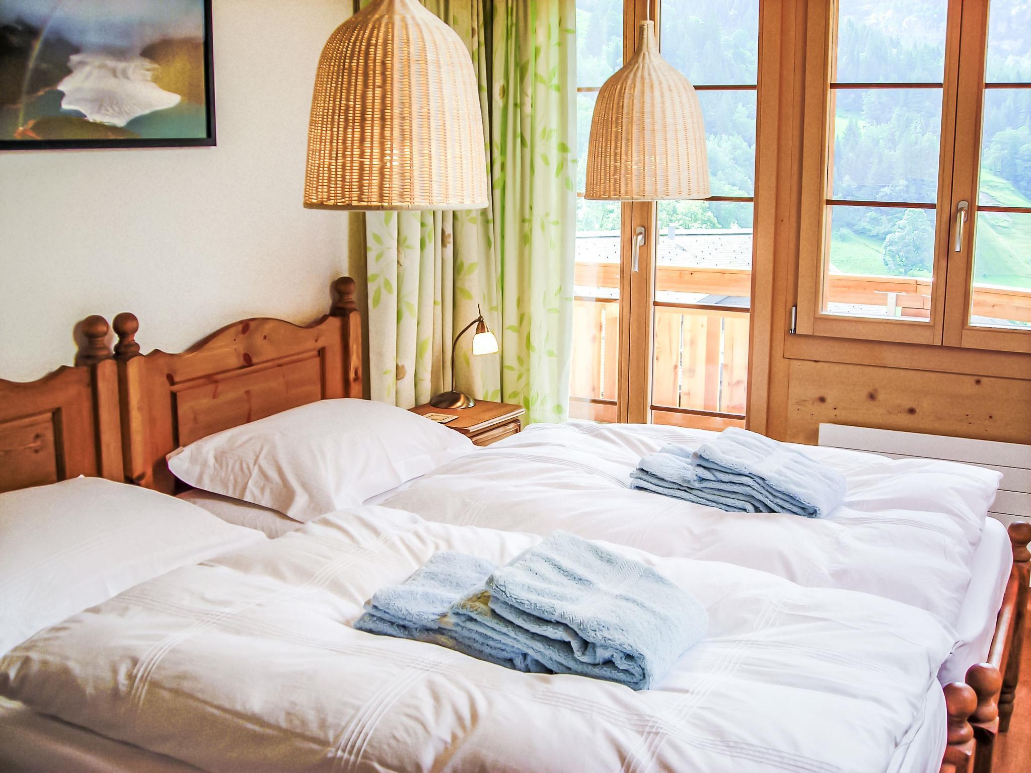Beautiful apartment house "Chalet Pfingsteggblick". In the district of im Graben, 200 m from the centre, in a quiet position, excellent location: right in the centre but still quiet, south facing position. In the house: sauna (extra). Storage room for bicycles, storage room for skis, central heating system, washing machine, tumble dryer (for shared use), drying room. Linen change (suppl. charge extra). Towel change (suppl. charge extra). Room cleaning on request (extra). Motor access to the house. In Winter: please take snow chains. Parking at the house, communal covered parking at the house. E-charging station. Shopping centre, restaurant, bar 200 m, bakery 100 m, bicycle rental 400 m, bus stop "Pfingstegg" 20 m, railway station "Grindelwald Dorf" 900 m, outdoor swimming pool 3 km, indoor swimming pool 800 m. Golf course (9 hole) 1 km, tennis 500 m, minigolf 600 m, sports centre 800 m, gondola lift, ski rental 400 m, ski bus stop 20 m, cross country ski track 500 m, children's playground 800 m. Well-known lakes can easily be reached: Thuner-/Brienzersee 18 km. Please note: no lift. Ski bus (free of charge). Neighbourhood highly sensitive to noise. Quietness and good behaviour expected.
