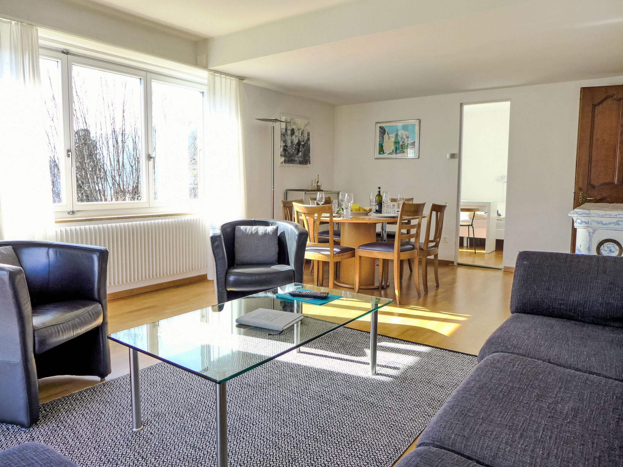 Beautiful apartment house "Chalet Jolimont", surrounded by meadows. In the district of auf dem Stutz, 1.6 km from the centre, in a quiet, sunny position, south facing position. For shared use: garden, meadow. In the house: storage room for skis, central heating system. In Winter: please take snow chains. Stepped path to the house. Parking at the house. Supermarket 1.7 km, shopping centre 1.7 km, restaurant 500 m, bicycle rental 1.9 km, bus stop "Stutz" 50 m, railway station "Grindelwald Dorf" 1.6 km, outdoor swimming pool 2.5 km, indoor swimming pool 1.7 km. Golf course (9 hole) 3 km, tennis 2.5 km, minigolf 2 km, sports centre 1.7 km, mountain railway 3 km, gondola lift 2 km, ski rental 1.7 km, ski bus stop 50 m, cross country ski track 2.5 km, children's playground 1.7 km. Well-known lakes can easily be reached: Thuner-/Brienzersee 20 km. Please note: no lift. Ski bus (free of charge). Additional accommodations can be booked. Neighbourhood highly sensitive to noise. Quietness and good behaviour expected.