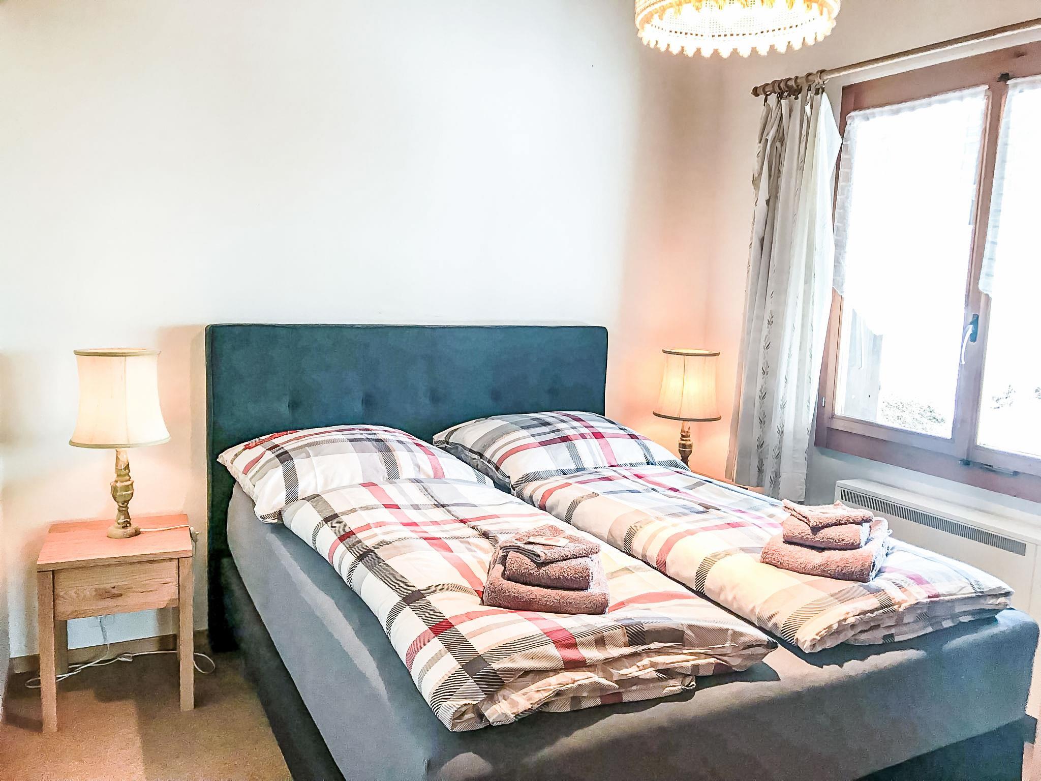 3-room apartment 60 m2 on 1st floor, south facing position. Cosy furnishings: living/dining room with open-hearth fireplace, digital TV and radio. Exit to the balcony, south facing position. 1 room with 2 beds (80 cm, length 200 cm). 1 room with 1 bed (160 cm, length 200 cm). Open kitchen (oven, dishwasher, 4 induction hot plates, electric coffee machine, Capsules for coffee machine (Nespresso) extra, raclette grill, fondue Set (chinoise, cheese)). Shower/WC. Upper floor: gallery. Balcony 8 m2, south facing position and west facing position. Balcony furniture. Marvellous view of the mountains and Eiger. Facilities: hair dryer, logs (extra). Internet (WiFi, free). Parking at 50 m. Please note: non-smokers only. Fire extinguisher.