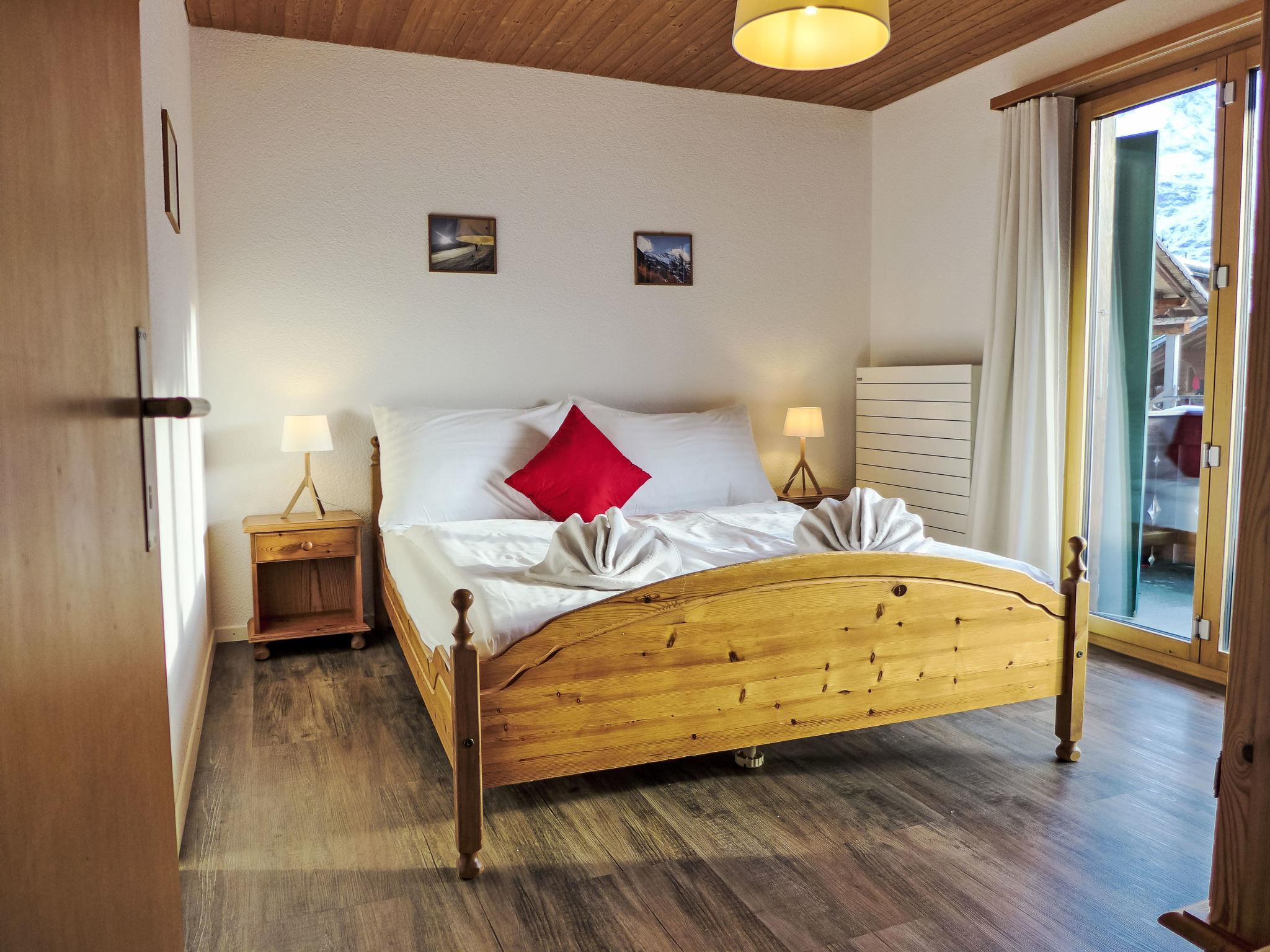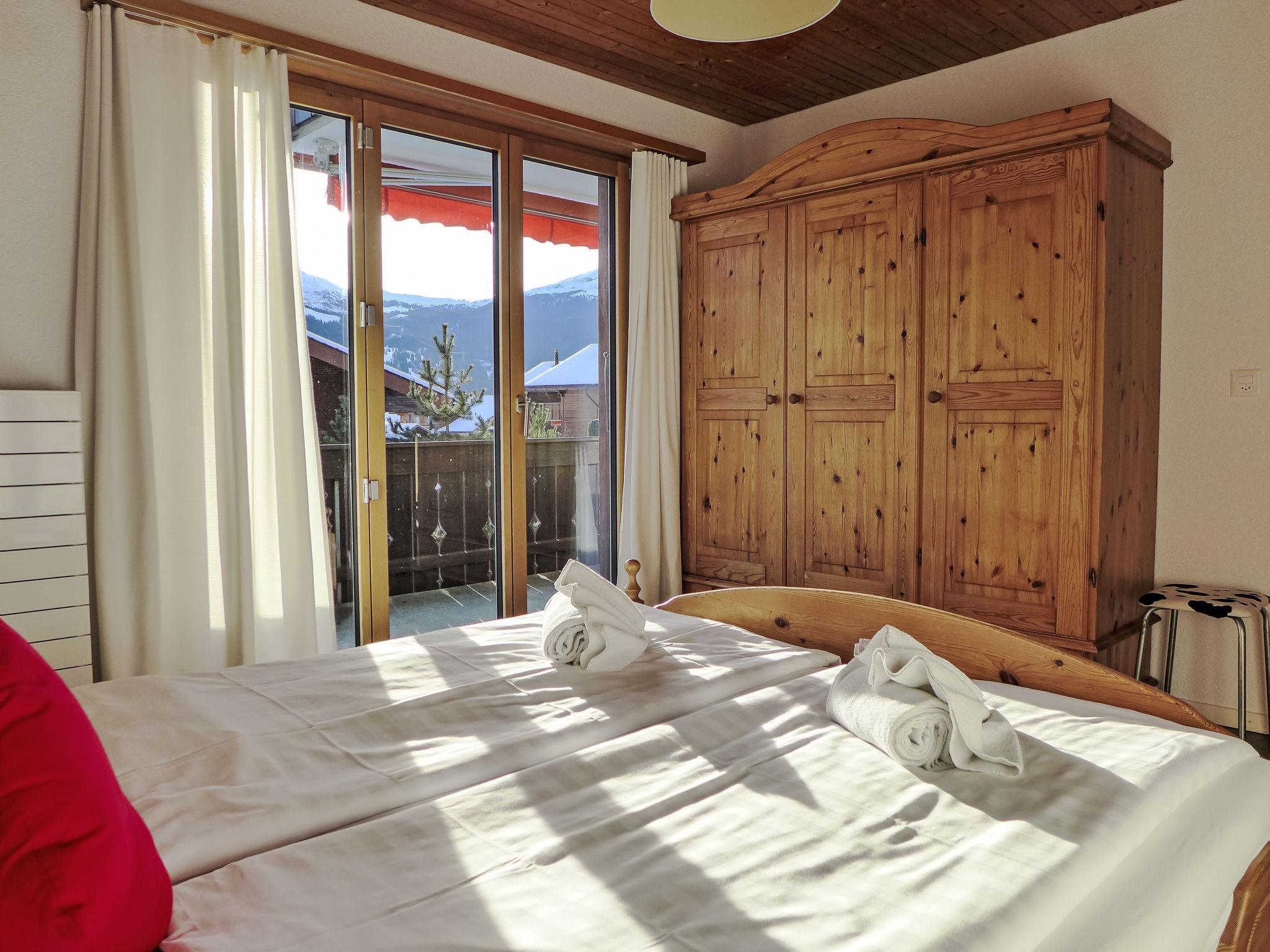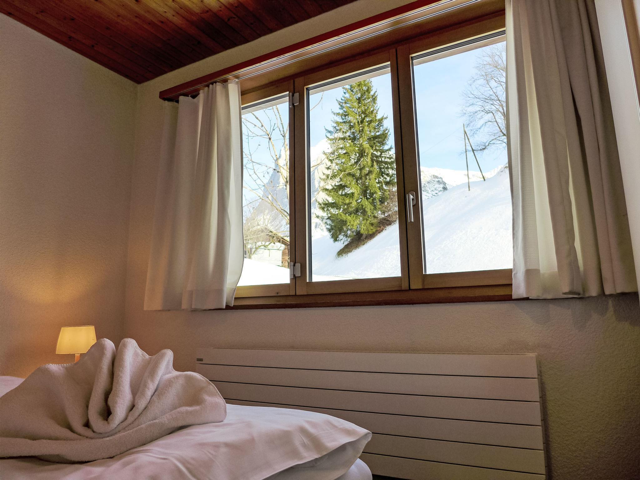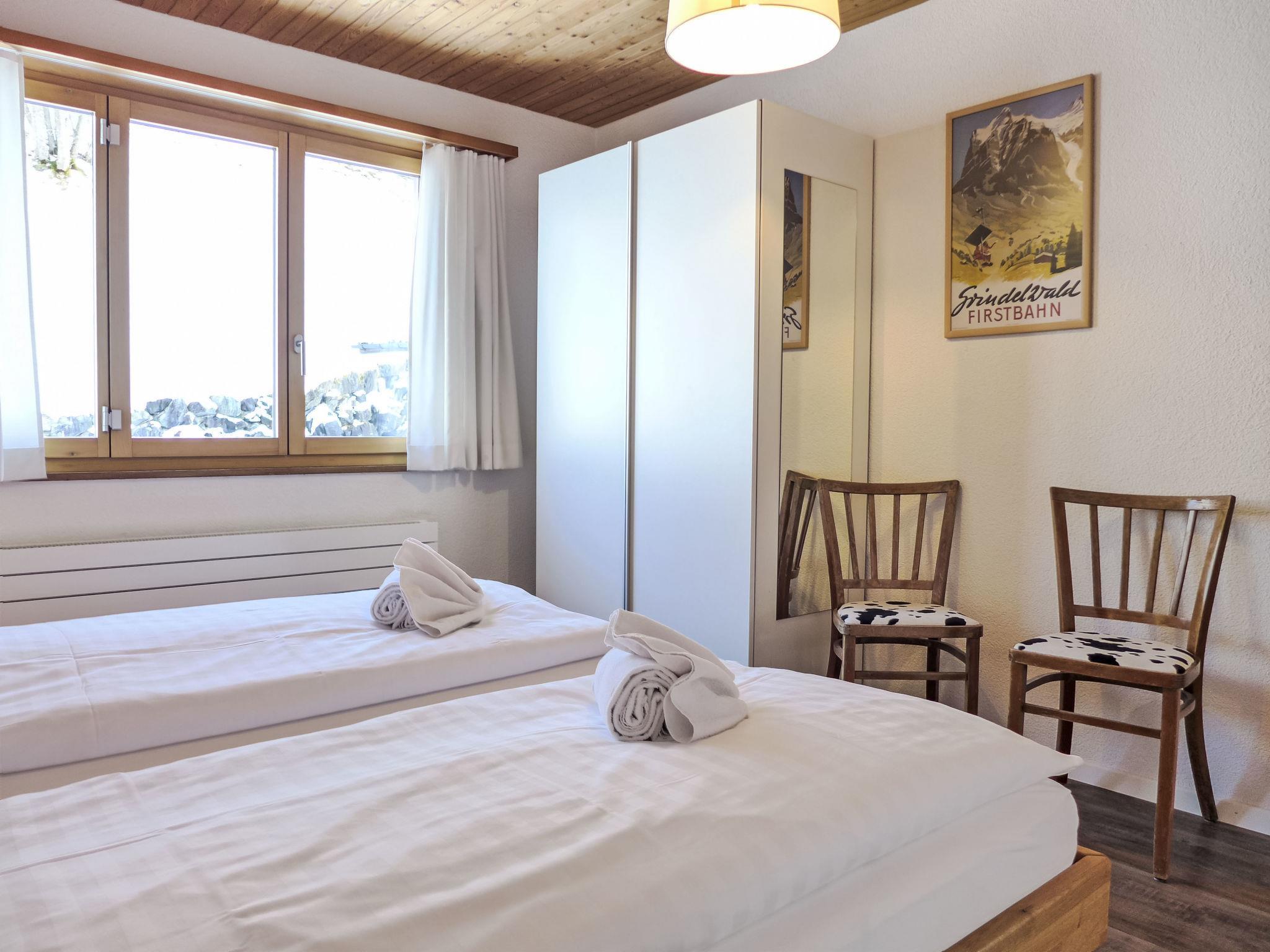"Chalet Bienli Mitte", 3-room apartment 80 m2, on the upper ground floor, south facing position. Spacious and bright, partly renovated in 2024, very comfortable and cosy furnishings: open living/dining room with dining nook and cable TV (flat screen), radio. Exit to the balcony, south facing position. 1 room with 1 double bed (2 x 80 cm, length 200 cm). Exit to the balcony, south facing position. 1 room with 2 beds (90 cm, length 200 cm). Open kitchen (oven, dishwasher, 4 ceramic glass hob hotplates, toaster, kettle, microwave, electric coffee machine, Capsules for coffee machine (Nespresso) extra, raclette grill, fondue Set (cheese)). Bath/WC. Parquet floors. Balcony 18 m2, south facing position. Balcony furniture. Marvellous panoramic view of the mountains and Eiger. Facilities: children's high chair, baby cot (extra), hair dryer. Internet (WiFi, free). Parking, garage space n Bienli at 50 m. Please note: non-smokers only. Fire extinguisher. When there are less than the maximum number of guests staying at the property, not all of the bedrooms will be available for use.
