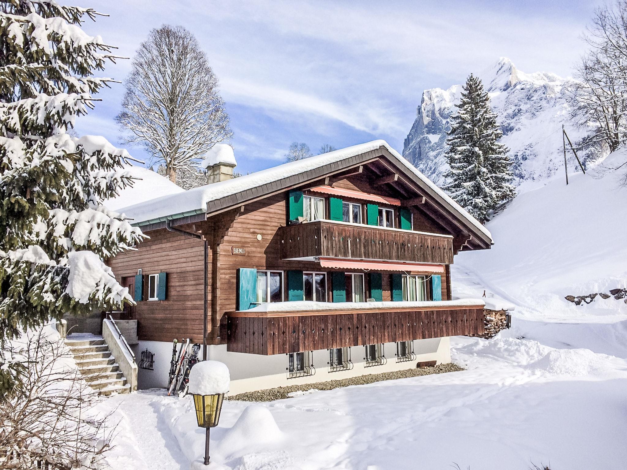 Comfortable chalet, 3 storeys, detached. 2 apartments in the property. In the district of Terrassenweg, 2.5 km from the centre, in a quiet, sunny position on a slope, 150 m from the skiing area, south facing position. In the house: storage room for skis, central heating system, washing machine, tumble dryer (for shared use). Storeroom available. Motor access to 50 m from the house. In Winter: please take snow chains. 50 m stepped path to the house. Parking at 50 m. Shopping centre 2.5 km, restaurant 150 m, bakery 2.5 km, bicycle rental 2.5 km, 10 minute walk to the centre, bus stop "Kreuzweg + Bodmi" 150 m, railway station "Grindelwald Dorf" 2.9 km, outdoor swimming pool 4 km, indoor swimming pool 2.8 km. Golf course (9 hole) 3.5 km, tennis 3 km, minigolf 2.5 km, sports centre 2.8 km, ski lift 150 m, gondola lift 2.6 km, slopes, ski rental, ski bus stop, ski school, children's ski school 150 m, cross country ski track 3 km, ice rink 2.8 km, children's playground 2.8 km. Well-known ski regions can easily be reached: First 150 m, Kleine Scheidegg/Männlichen 4 km. Well-known lakes can easily be reached: Thuner-/Brienzersee 20 km. Hiking paths: Jungfrau Region. Please note: no lift. Ski bus (free of charge). Free ski bus service to the ski region Kl. Scheidegg/Männlichen and First. The keys‘ handover takes place by the agency Interhome in Grindelwald.