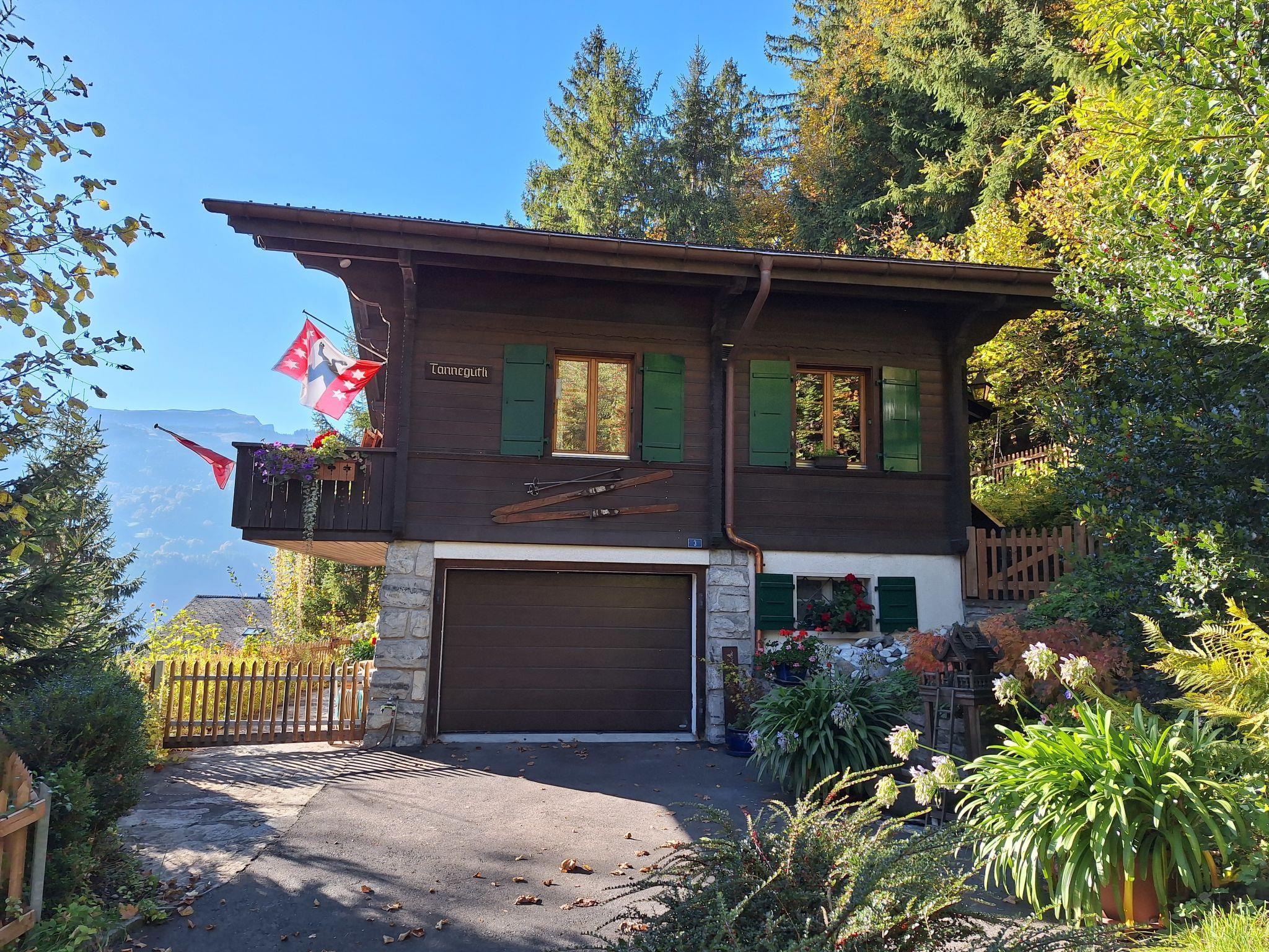 Very beautiful, comfortable single-family house "Chalet Tannengüetli", 3 storeys. In a secluded, sunny position on a slope, located by a road, south facing position. Private: property (fenced), well-kept garden with flowers and trees. Terrace, garden furniture, barbecue. In the house: central heating system, washing machine, tumble dryer, ski boot dryer. Motor access to the house. 4x4 car recommended in winter. Parking (for 3 cars) on the premises, single garage. Dimension: height 180 cm. Shop 1.1 km, grocery 800 m, restaurant 230 m, bus stop "Tuftbach" 160 m, railway station "Grindelwald Bahnhof" 1.1 km, outdoor swimming pool 2 km, indoor swimming pool 1.1 km. Golf course (9 hole) 3.5 km, gondola lift 1.5 km, skisport facilities 1.5 km, ski bus stop 160 m, ski school 1.1 km, children's ski school 1.3 km, cross country ski track 2 km. Well-known ski regions can easily be reached: Grindelwald Frist, Männlichen - Kleine Scheidegg. Well-known lakes can easily be reached: Thunersee, Brienzersee. Hiking paths: First - Grosse Scheidegg. Please note: ski bus (free of charge). Free ski bus service to the ski region First and Männlichen - Kleine Scheidegg.