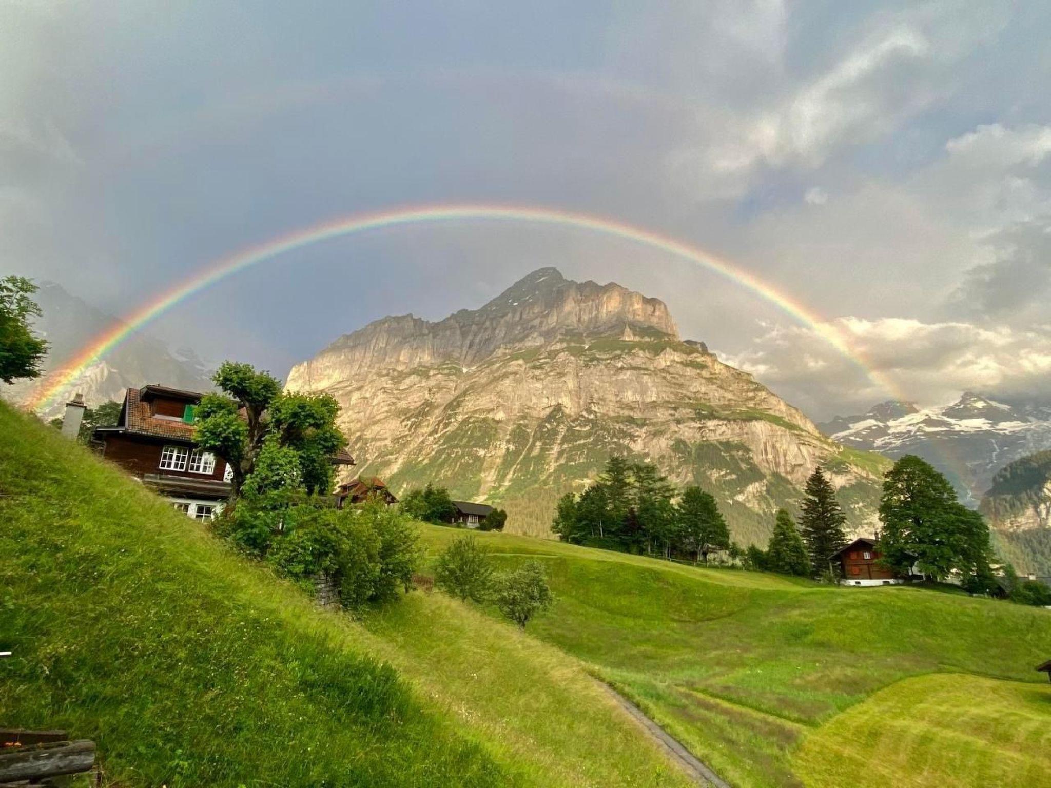 Bright, 18 m2 1-room flat in a cosy single-family chalet in a quiet and sunny location. 180° view of the unique Grindelwald mountains (Eismeer, Fiescherhorn Eiger, Eiger north face, Tschuggen and Männlichen). Balcony/terrace with dining table and chairs.