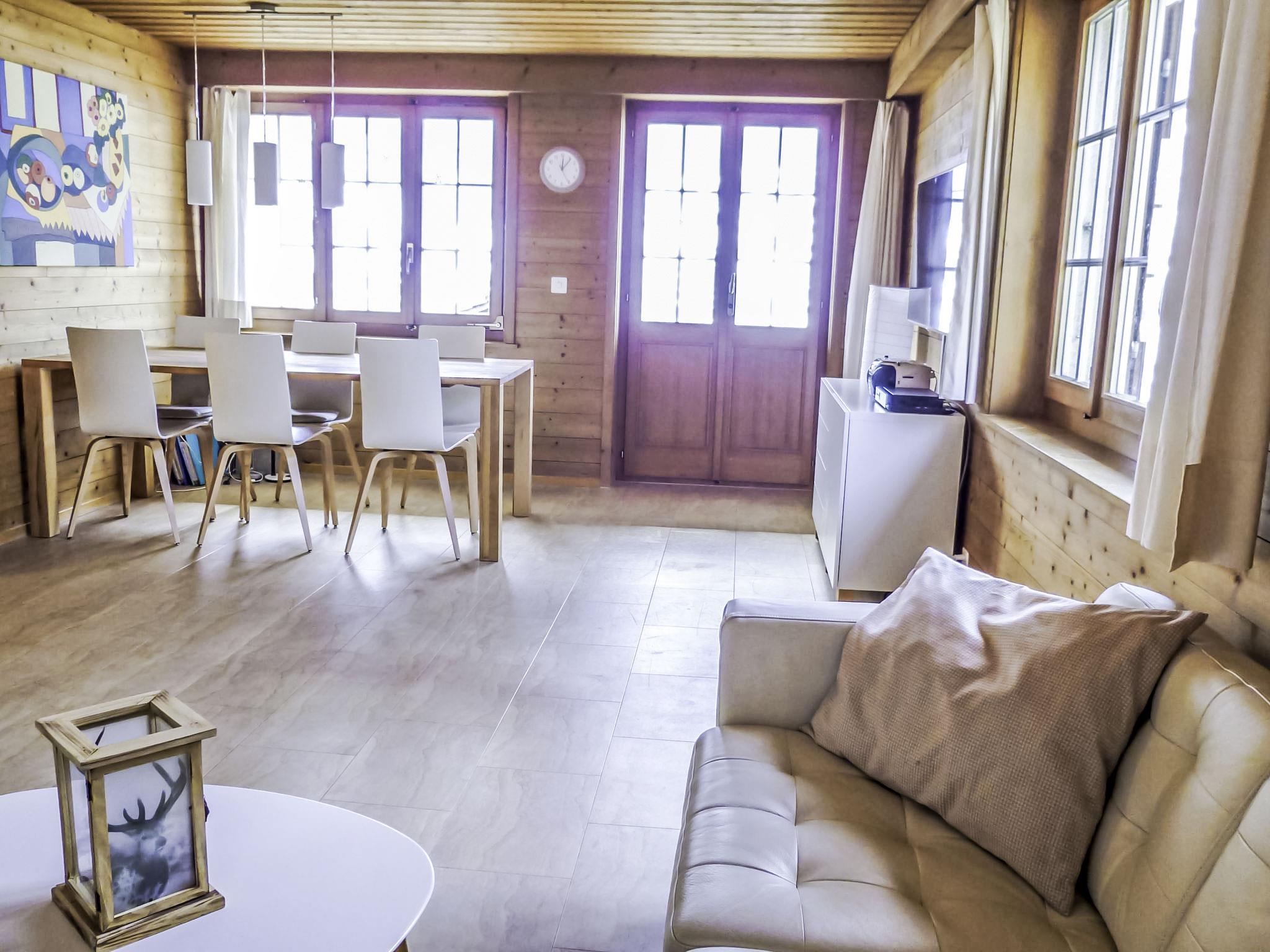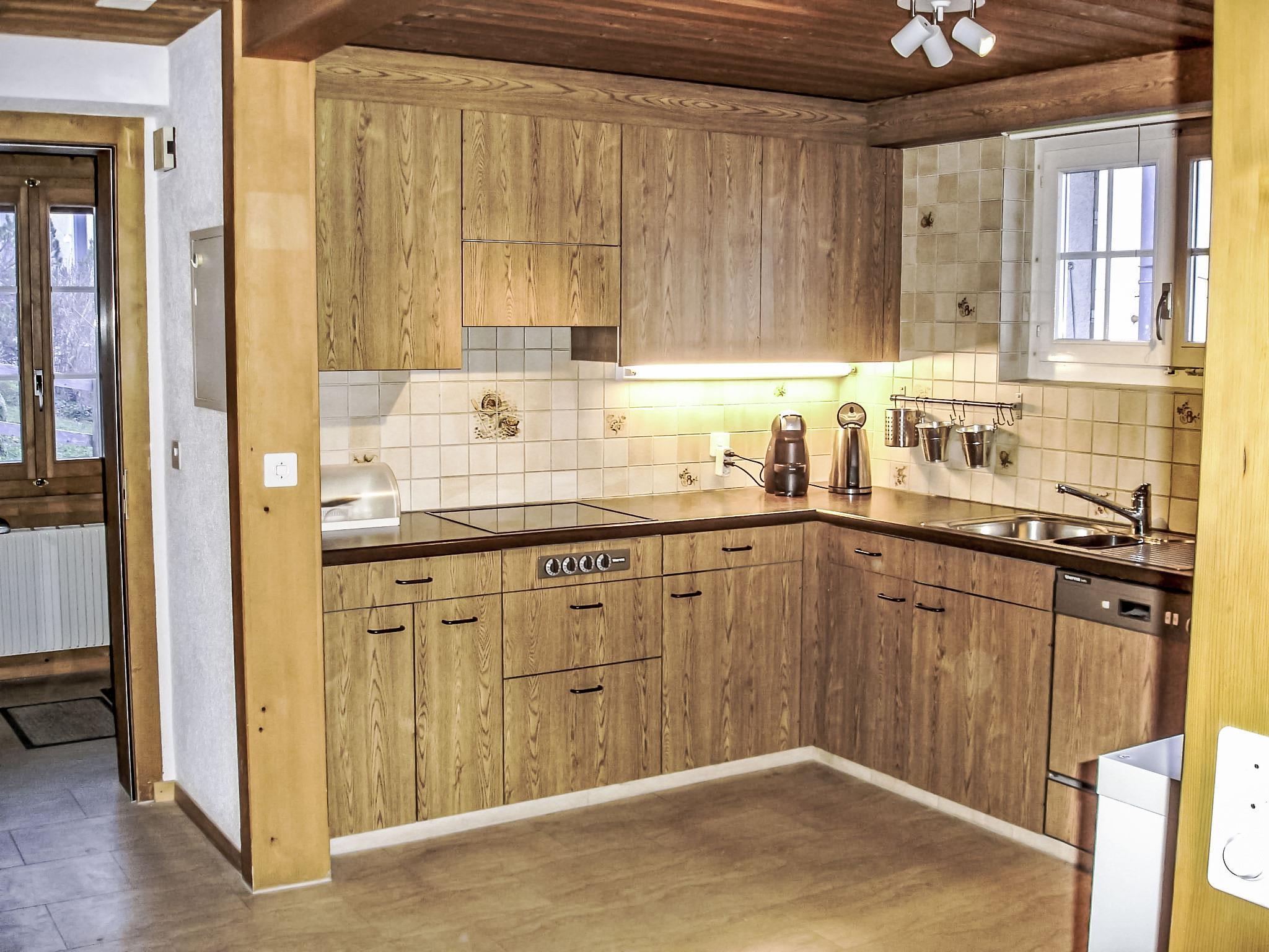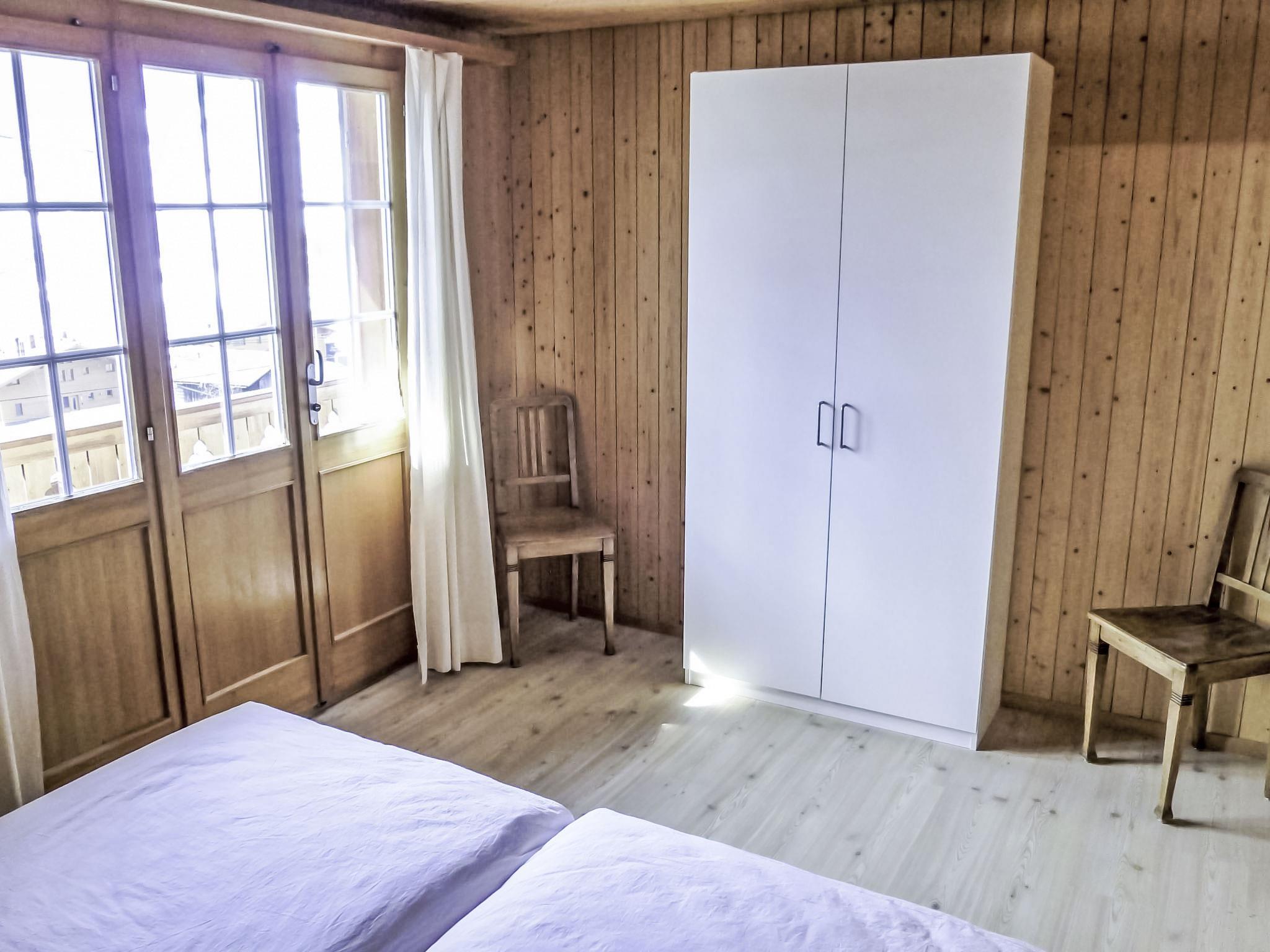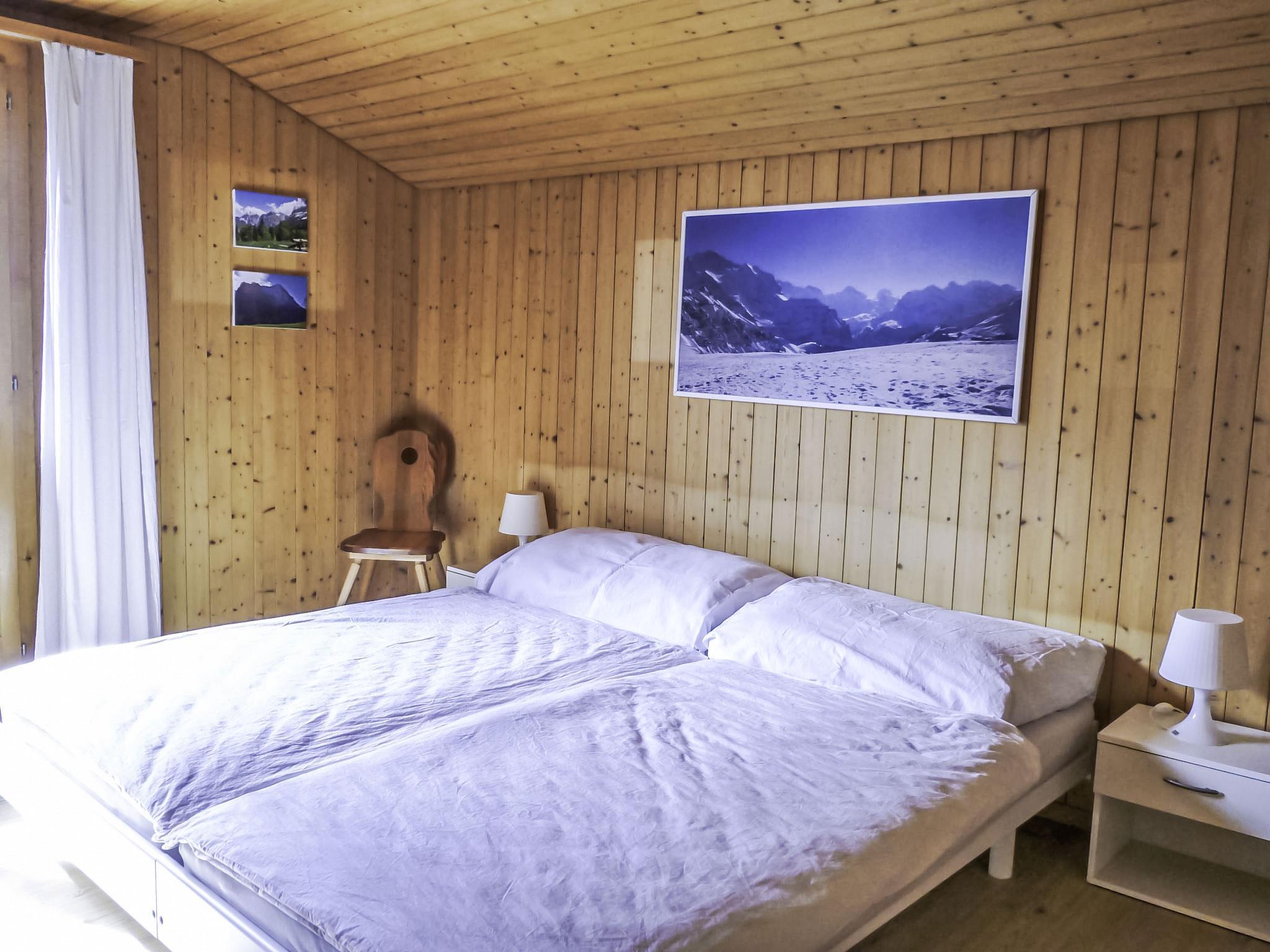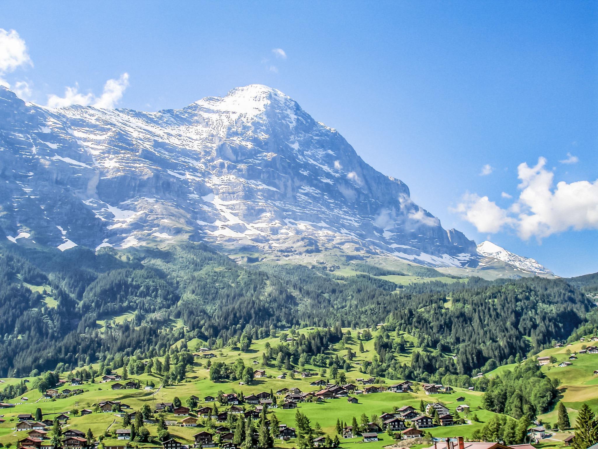 4-room chalet 110 m2 on 2 levels, south facing position. Renovated in 2014, cosy furnishings: living/dining room with Scandinavian wood stove and satellite TV (flat screen), radio, CD-player and DVD. Exit to the patio, south facing position. Open kitchen 8 m2 (oven, dishwasher, 4 ceramic glass hob hotplates, microwave, electric coffee machine, Capsules for coffee machine (Nespresso) extra, fondue Set (cheese)). Exit to the patio, south facing position and west facing position. Shower/WC. Floor heating. Upper floor: 2 rooms, each room with 2 beds (90 cm, length 200 cm). Exit to the balcony, south facing position. 1 room with 2 beds (90 cm, length 200 cm). Bath/WC. Floor heating. Parquet floors, natural stone floors. Balcony, south facing position and west facing position, patio, south facing position. Terrace furniture, barbecue. Marvellous view of the mountains and Eiger. Facilities: hair dryer. Internet (WiFi, free). Parking, garage. Please note: suitable for families. Non-smokers only. Fire extinguisher.