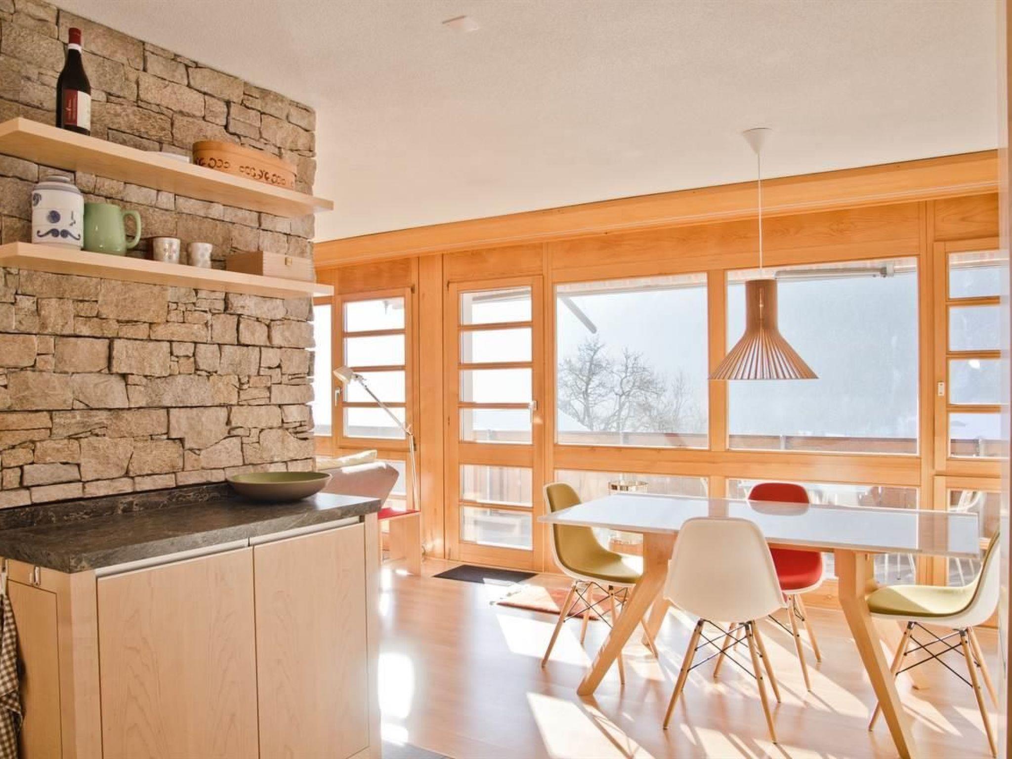The 86m2 3.5-room apartment on the 3rd floor has a bedroom with double bed, a bedroom with two single beds and a bathroom with shower and toilet. The modern kitchen opens onto the open dining/living area. From the balcony you can enjoy wonderful views of the mountain panorama.