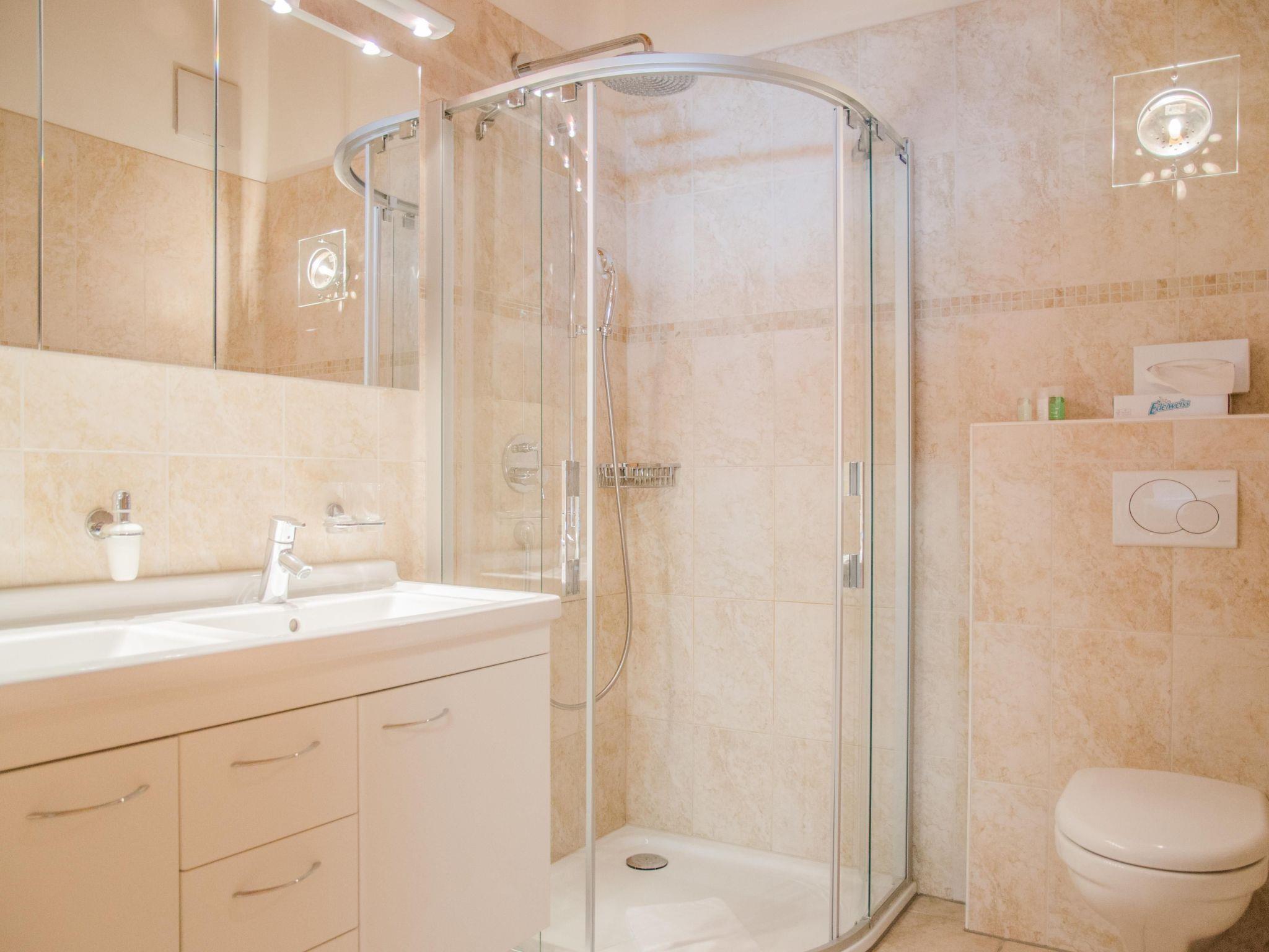 The cosy 84m2 3.5-room attic apartment has one bedroom with double bed and bunk bed, one bedroom with double bed and a bathroom with shower and toilet and a separate toilet. The well-equipped kitchen opens onto a bright living area with Scandinavian stove.