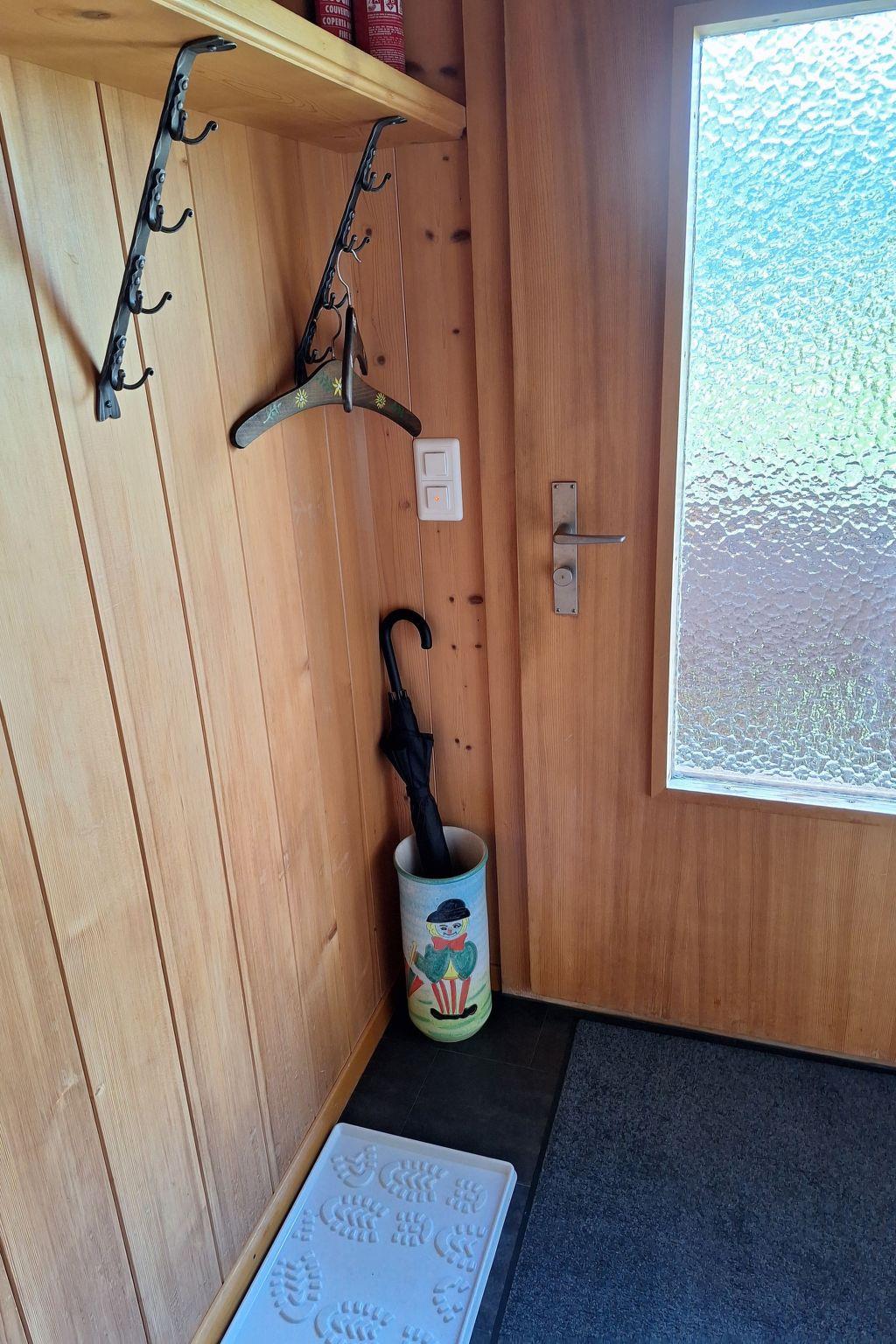 The outdoor area boasts a small, charming balcony, which can be reached via the front door. Equipped with a folding table, it is the ideal place to start the day in the fresh mountain air or for cosy evenings under the stars. A washing machine is available in the building as a shared amenity. Not forgetting the idyllic sunbathing lawn, which is perfect for relaxing hours in the sun or a picnic in the countryside.