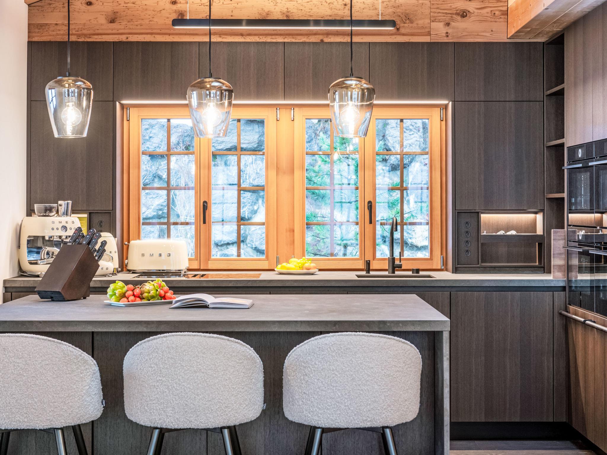 Modern, luxurious chalet "Chalet Andra", 3 storeys, built in 2023. 500 m from the centre of the village, in a central position, in the countryside. Private: property 710 m2 with natural garden 300 m2. In the house: sauna, steam room, storage room for skis. Room cleaning daily. House maid on request. Cook on request. Parking (for 4 cars) on the premises, single garage. E-charging station. Bus stop 400 m. Ski lift, slopes 400 m.