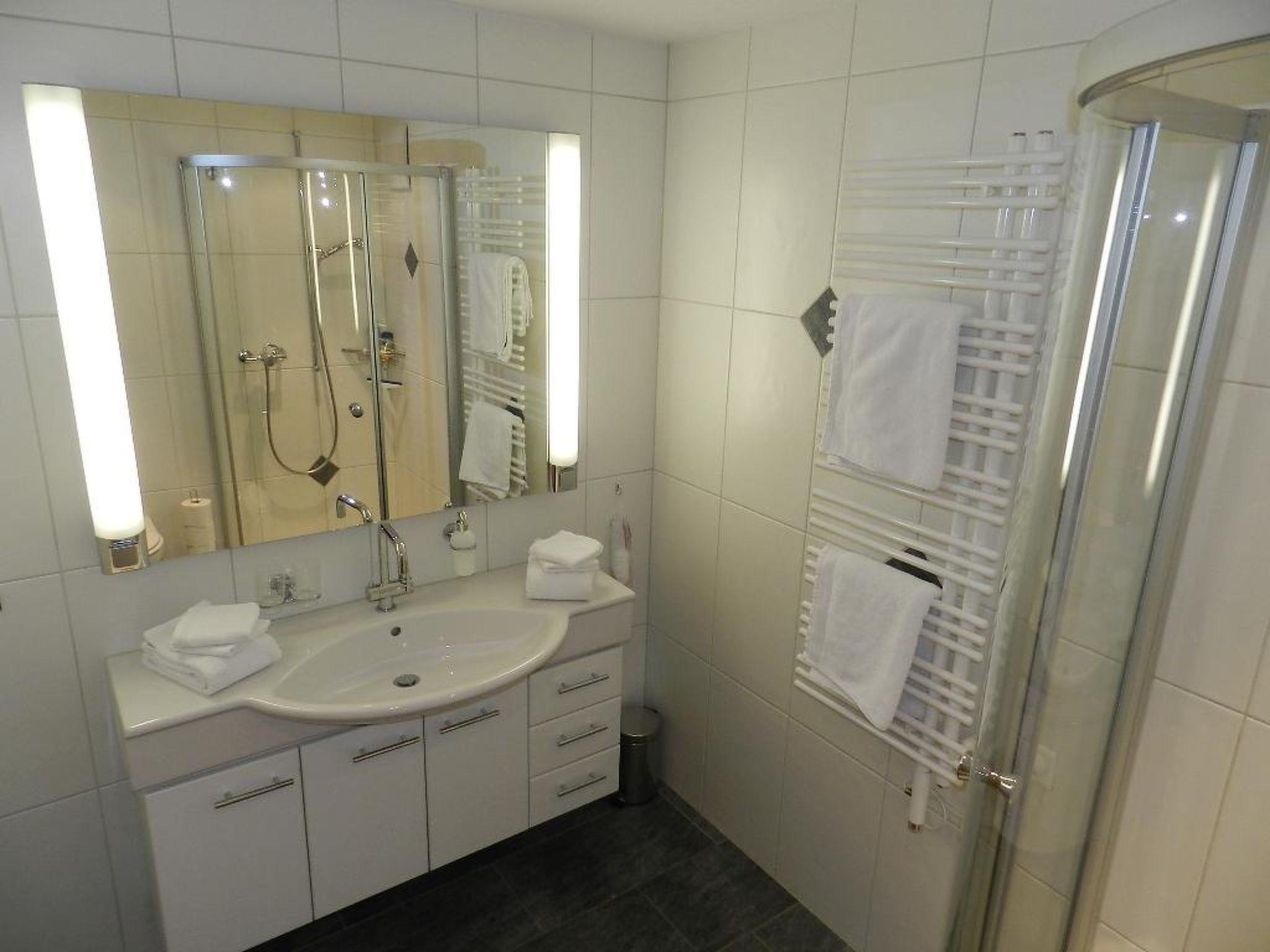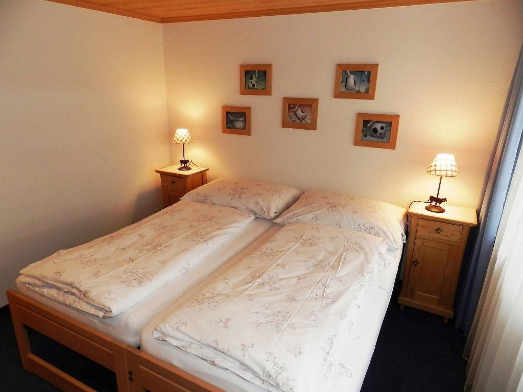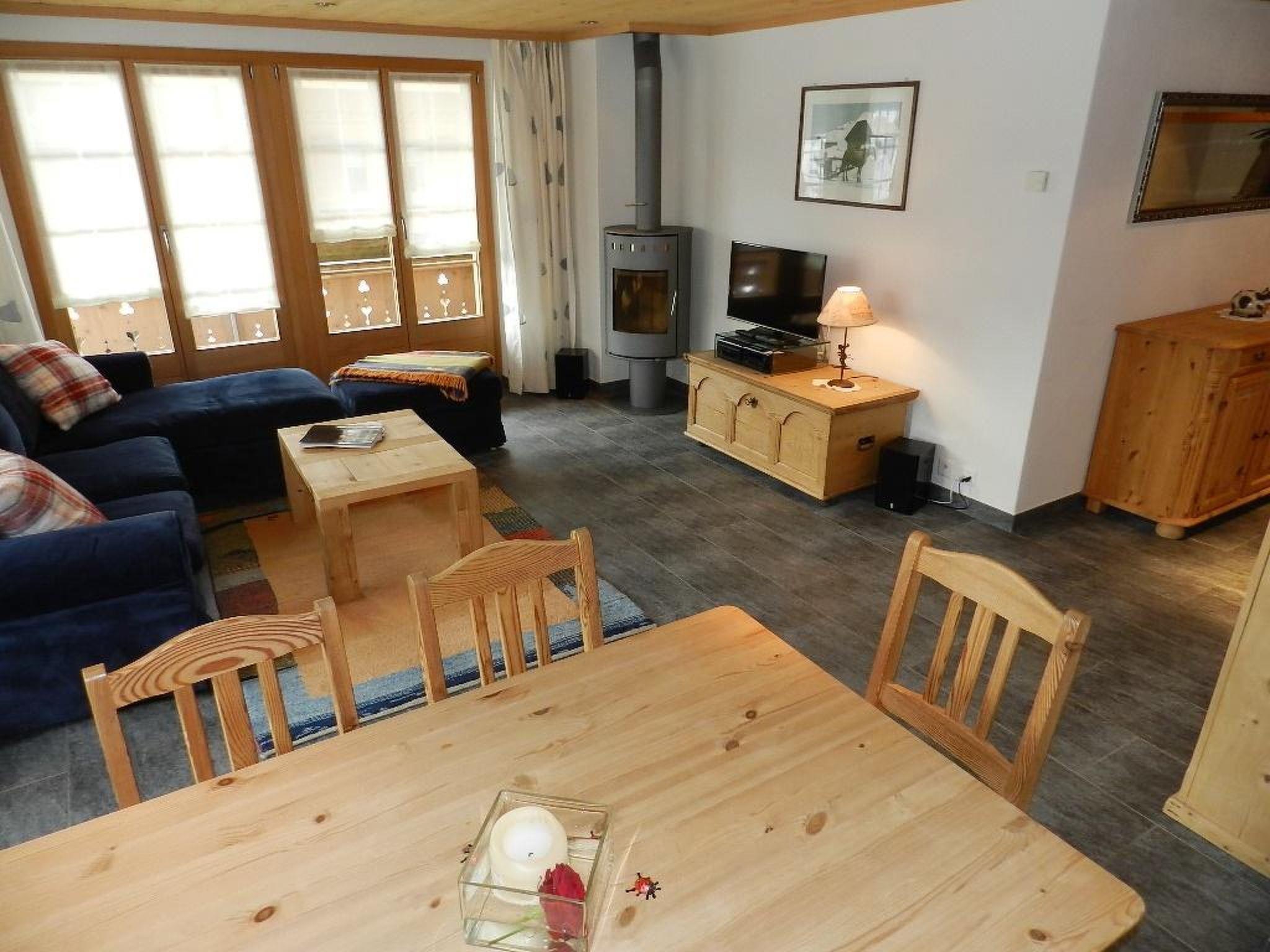 Living-/dining room with stove, open-plan kitchen (among other things furnished with coffee machine with capsules (Nespresso) as well as a fondue- and raclette-set). TV and couch. 2 double bedrooms (1x160x200cm and 2x90x200cm) with one shower/WC and 1 guest toilet. Common laundry. WiFi.