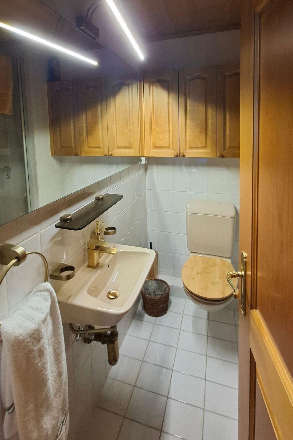 Bright living-/dining room with open-plan kitchen (among other things furnished with ceramic hob and fume hood, refrigerator with freezer, oven, microwave oven, dish washer, electric kettle, coffee machine with capsules (Nespresso), raclette- and fondue-set), dining table, lounge suite (sofa), TV, radio and DVD player. 1 bedroom with 2 single beds (each 90x200cm). 1 bedroom with 2 single beds (each 90x200cm) with possibility to push together. 1 bedroom with 1 bunk bed (90x200cm). 1 bathroom with bathtub/toilet. 1 bathroom with shower/toilet. Store room (in the garage). WiFi.