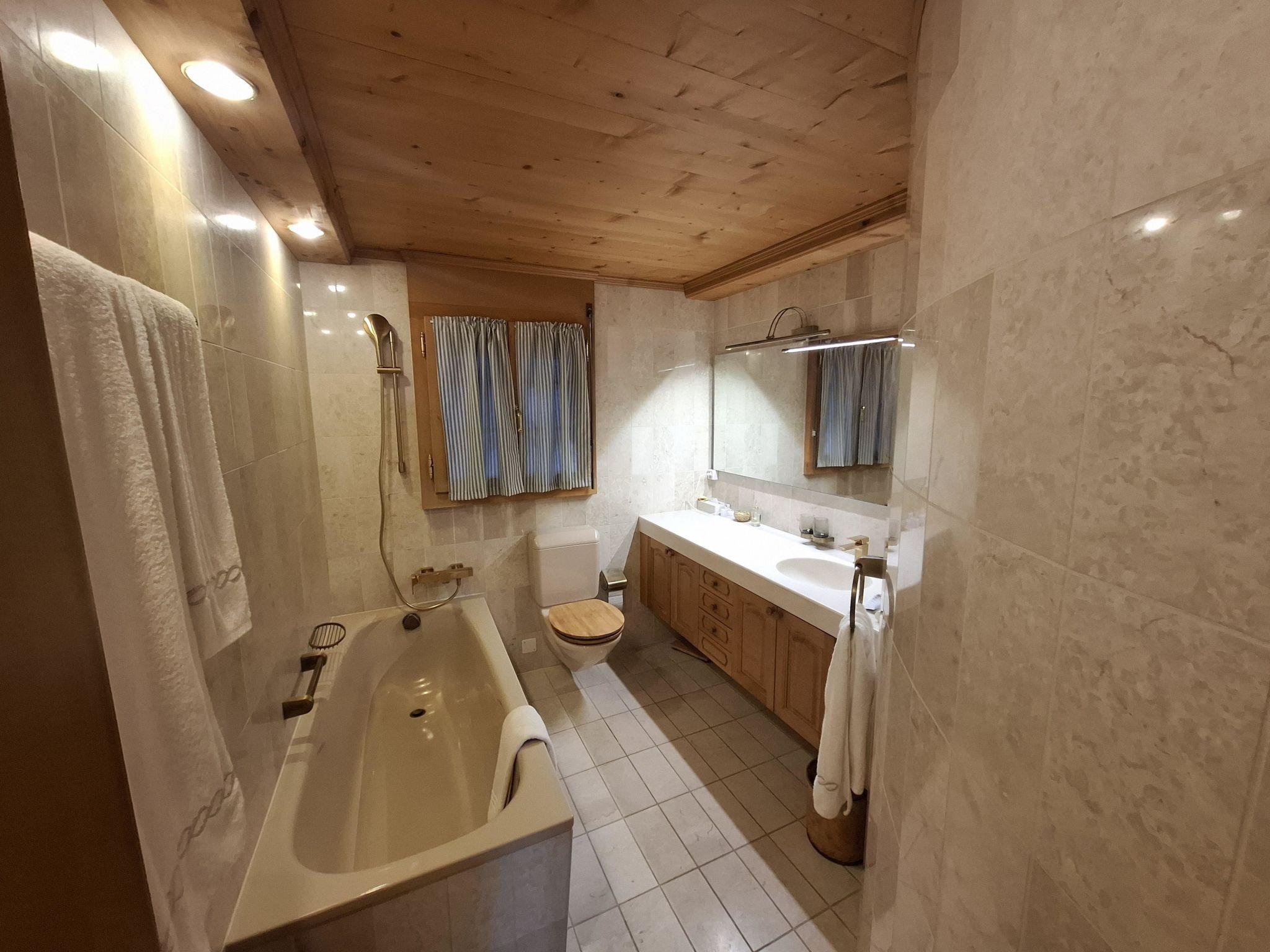 95 m2. More information by the provider: Centrally located 4.5 room apartment (95sqm) on the 1st floor of a multi-family chalet. Large balcony with direct view to the tennis court/ice rink/beach volleyball court. Marvelous view to Gstaad and the mountains. Laundry with washing machine and tumble dryer for common use are available. 1 parking space in the underground garage. Notice: From April 15 until the end of June 2026, the building façade and the chalet roof will be renovated. During this period, construction noise my occur during the day, (from 7:00 a.m. to 12:00 p.m. and from 1:00 p.m. to 7:00 p.m.)