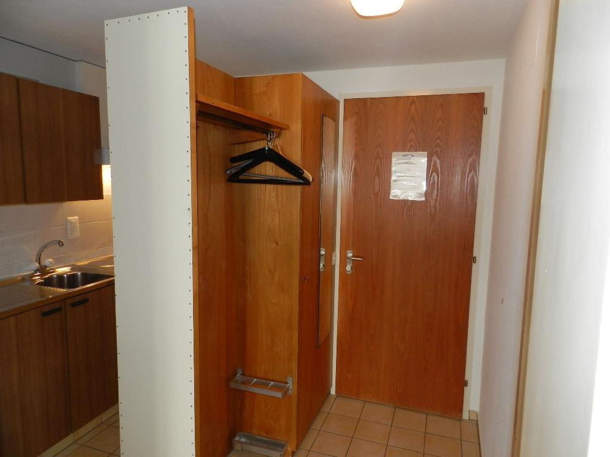 Practically and simple furnished studio. Living/dining room with dining table, sofa, TV and cabinet/fold-away bed (2 single beds, each 90x200cm). Small separate kitchenette (among with coffee machine with capsules and fondue-set). Bathroom with bathtub/toilet. Washing machine and tumble dryer for common use upon request. Wifi.