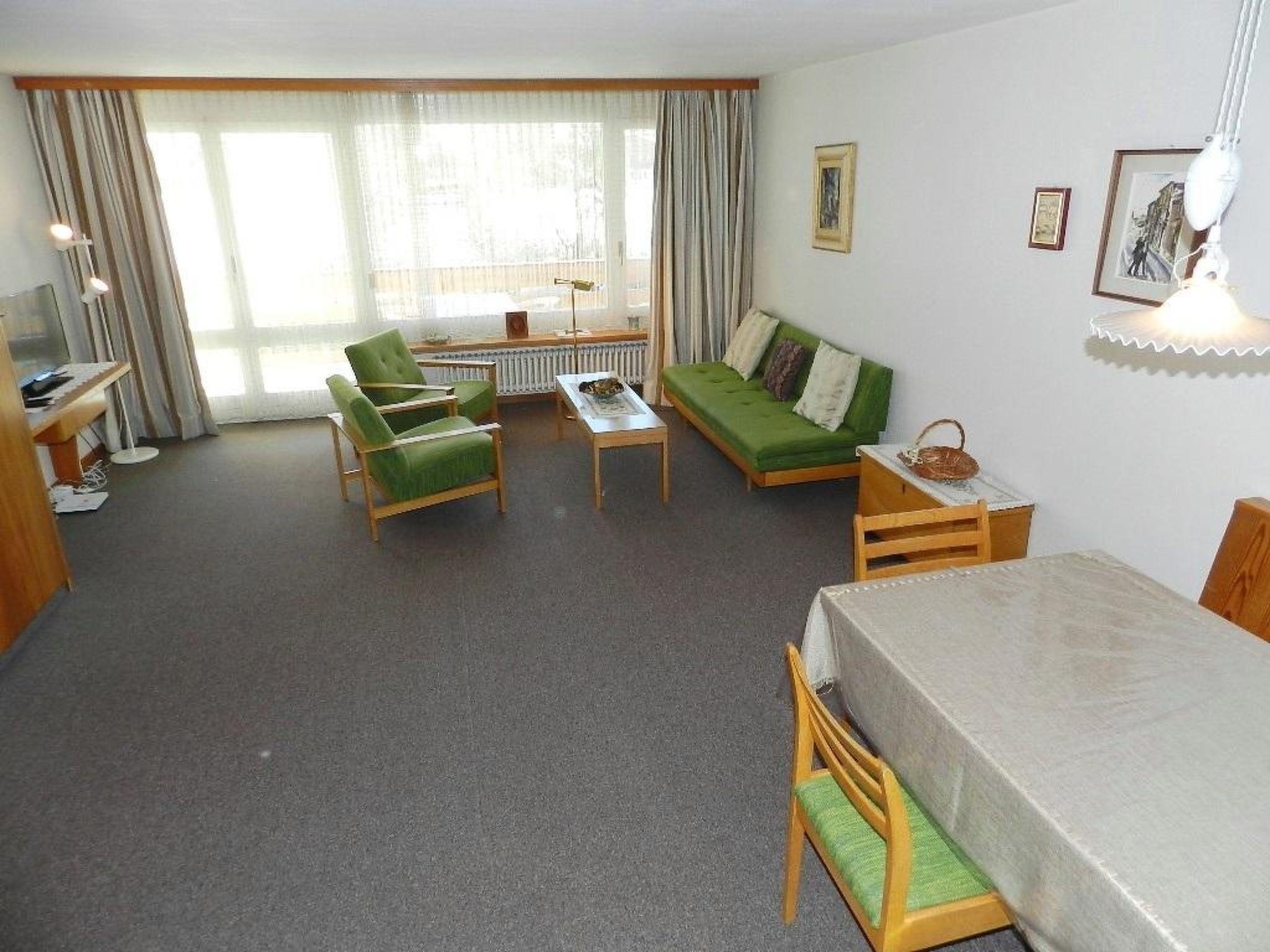 40 m2. More information by the provider: Studio (40sqm) on the 2nd floor of an apartment house. Quiet and sunny location close to the Eggli cable car. Furnished balcony. Approx. 10 minutes walking distance to the car-free village centre and shopping area. Ski bus stop in front of the house during the winter season. 1 uncovered parking space is available.