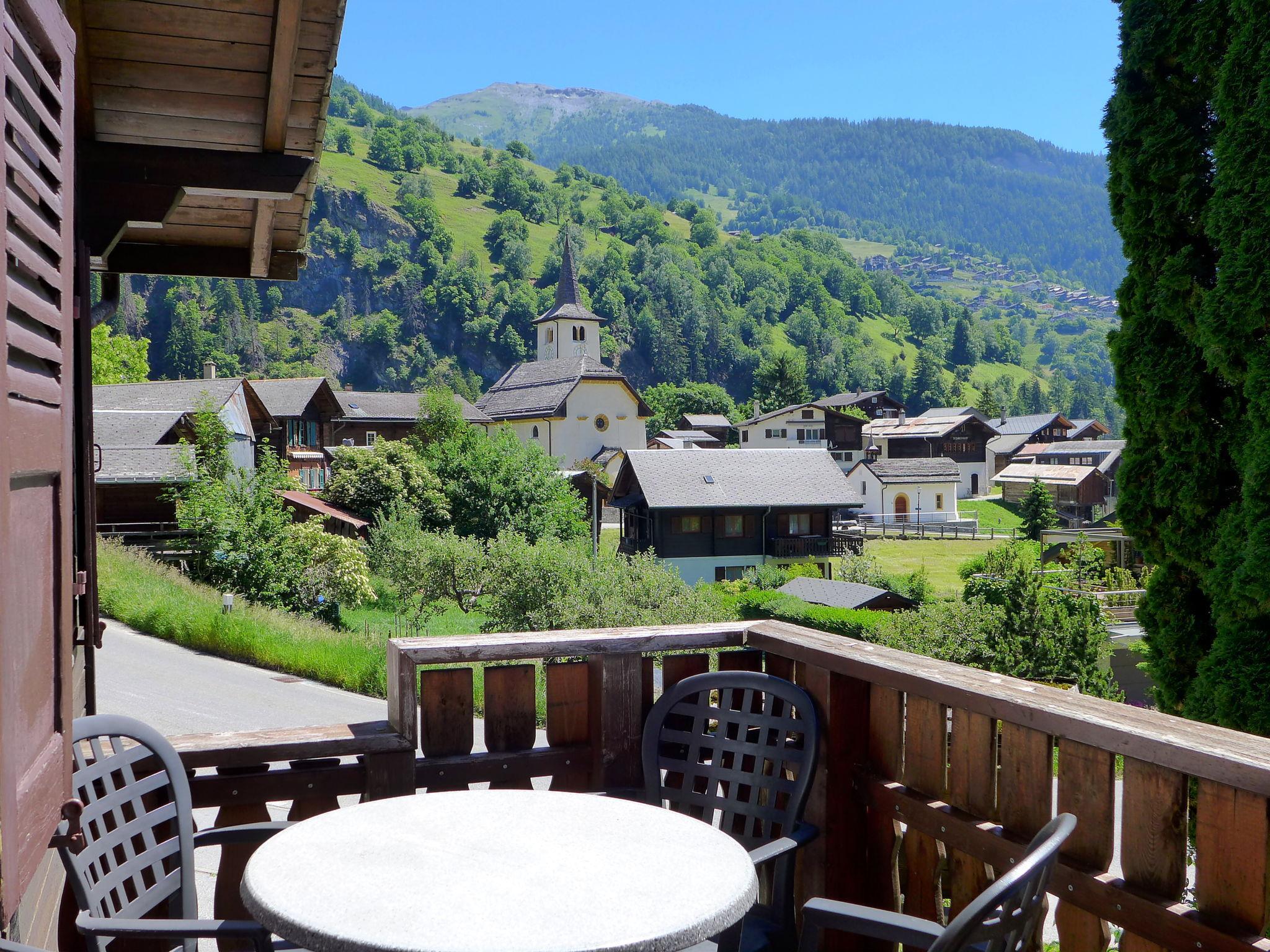 3-room apartment 47 m2 on 1st floor. Simple and practical furnishings: living room with satellite TV, cable TV and digital TV (flat screen), radio. Exit to the balcony. 1 double bedroom with 1 double bed (2 x 90 cm, length 200 cm). 1 room with 2 beds (90 cm, length 200 cm). Small, open kitchen (3 hot plates, oven, dishwasher, kettle, microwave, electric coffee machine, raclette grill, fondue Set (cheese)) with dining table. Bath/WC. Electric heating. Balcony, south facing position. Balcony furniture. Beautiful view of the mountains, the countryside and the resort. Facilities: Internet (WiFi, free). Please note: non-smoking house.