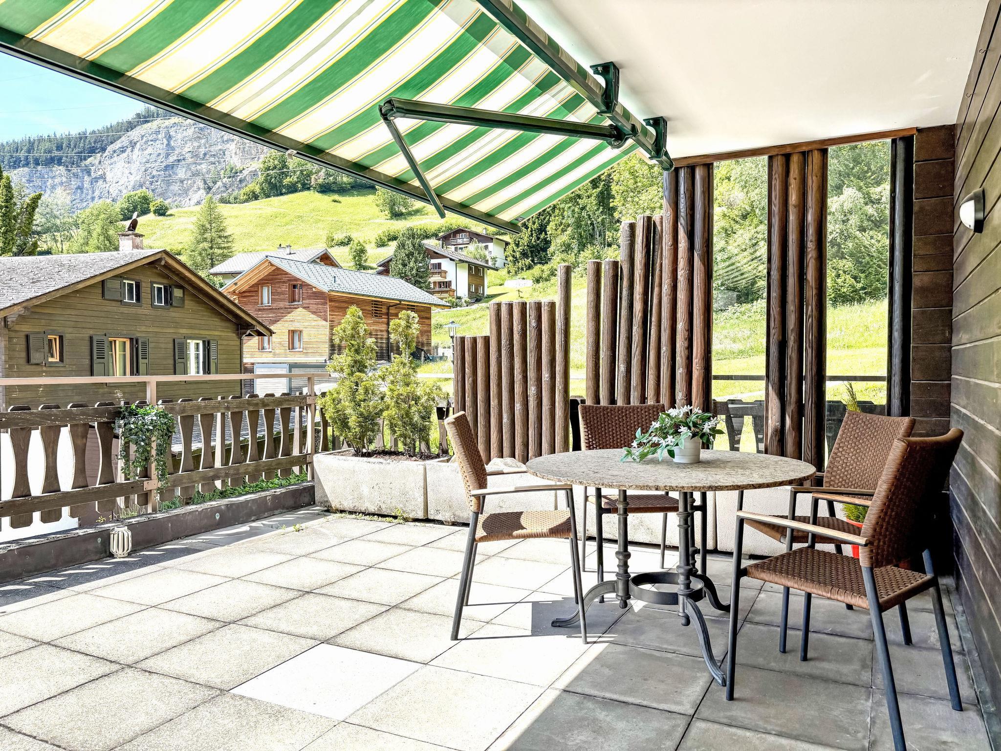 "Gemmi", 2-room apartment 54 m2 on 1st floor, south facing position. Bright, partly in 2025, comfortable and cosy furnishings: open living/dining room 30 m2 with 1 double sofabed (140 cm, length 200 cm), dining table and digital TV. Exit to the terrace. 1 double bedroom with 1 double bed (180 cm, length 200 cm). Open kitchen (3 hot plates, oven, kettle, microwave, freezer, electric coffee machine, raclette grill). Bath/WC. Large terrace 40 m2, south facing position. Terrace furniture, deck chairs. Marvellous panoramic view of the mountains and the countryside. Facilities: Internet (WiFi, free). Parking (1 car). Please note: non-smokers only.