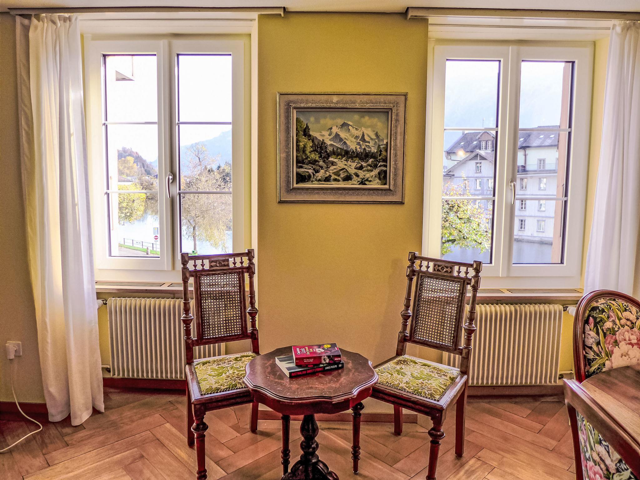 Historical apartment house "Bieri-Haus", 3 storeys. In the centre of Unterseen 500 m from the centre of Interlaken, in a busy, sunny position, in the heart of the city. In the house: central heating system. Shop 500 m, supermarket 350 m, restaurant 100 m, bakery 100 m, bus stop 50 m, railway station "Interlaken West" 700 m, outdoor swimming pool 800 m, indoor swimming pool. Golf course (18 hole) 3 km, tennis 1.1 km, indoor tennis centre 750 m, minigolf 800 m, walking paths from the house 50 m, skisport facilities 15 km, children's playground 150 m. Nearby attractions: Jungfraujoch, Freilichtmuseum Ballenberg, Beatushöhlen. Well-known ski regions can easily be reached: Jungfrau Ski Region. Well-known lakes can easily be reached: Thunersee, Brienzersee.