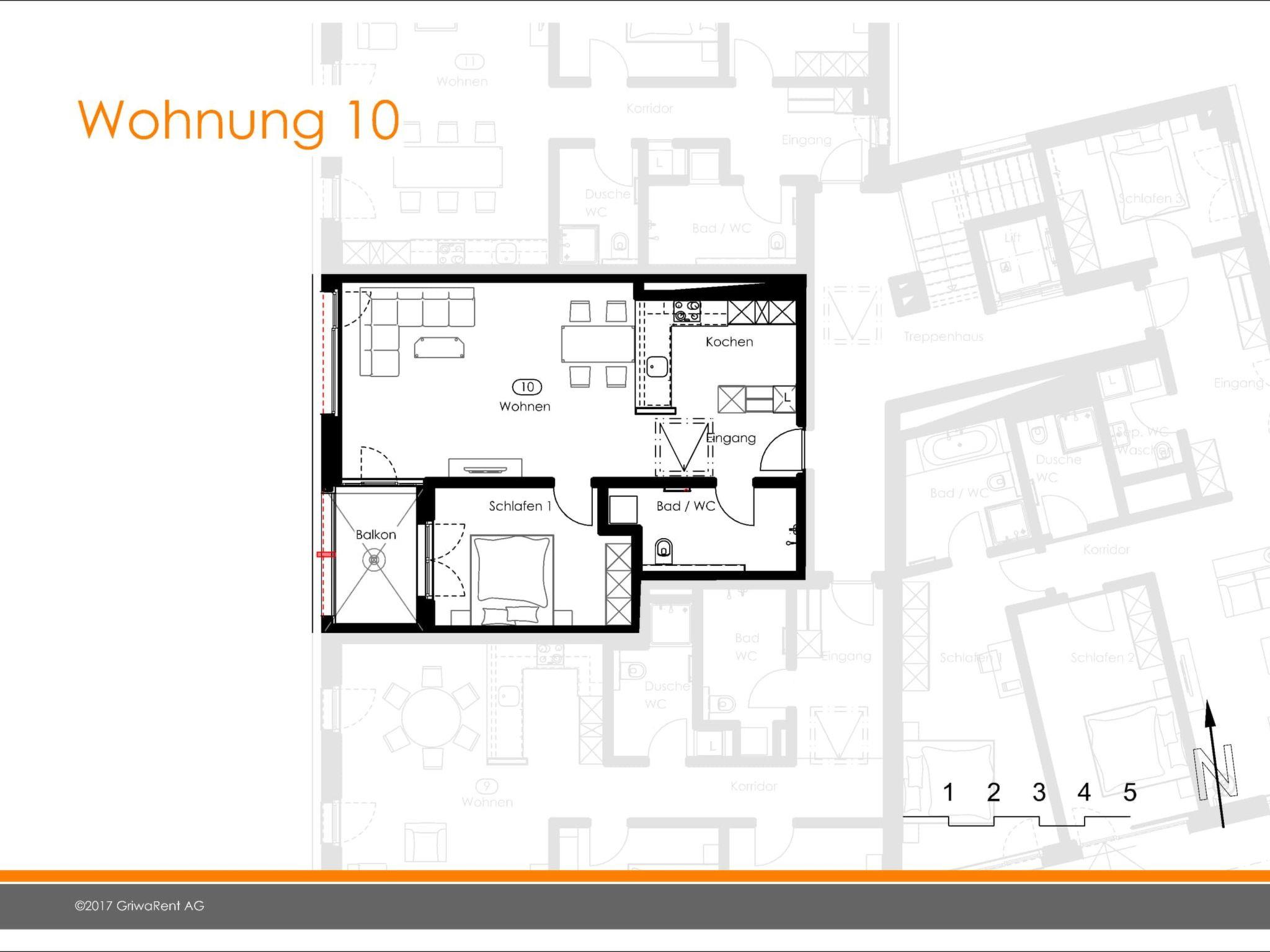 The 2.5-room penthouse flat offers a bedroom with a comfortable double bed (180x200cm), a bathroom with bathtub and WC on 74m2. The modern, high-quality and well-equipped kitchen opens onto the spacious living and dining area with a balcony offering a fantastic mountain view.