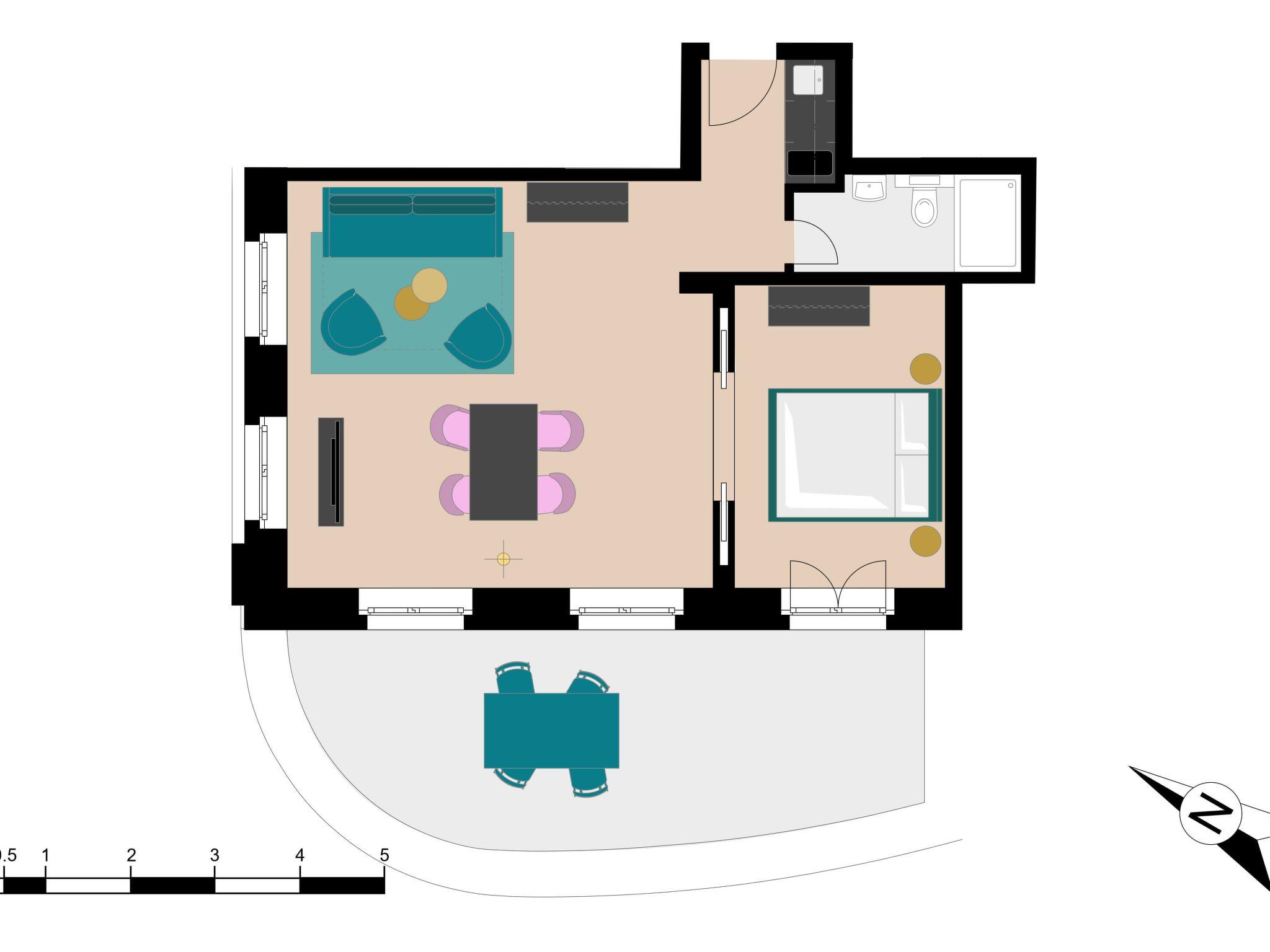 - Number of bedrooms: 1