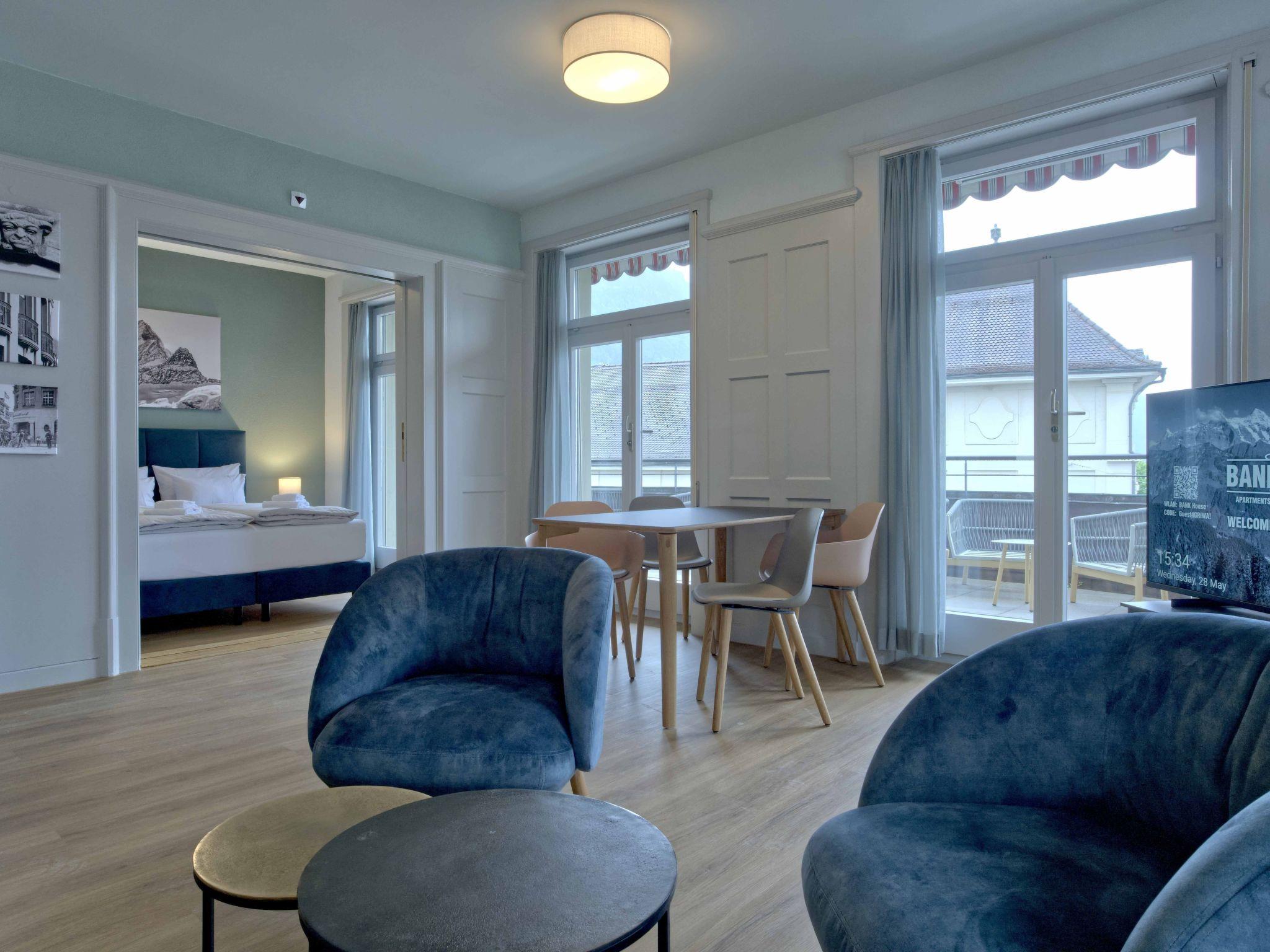 A special highlight of the suite is the balcony, which offers a breathtaking view of the centre of Interlaken and the surrounding mountains. Here you can enjoy your morning coffee or round off the evening with a glass of wine.