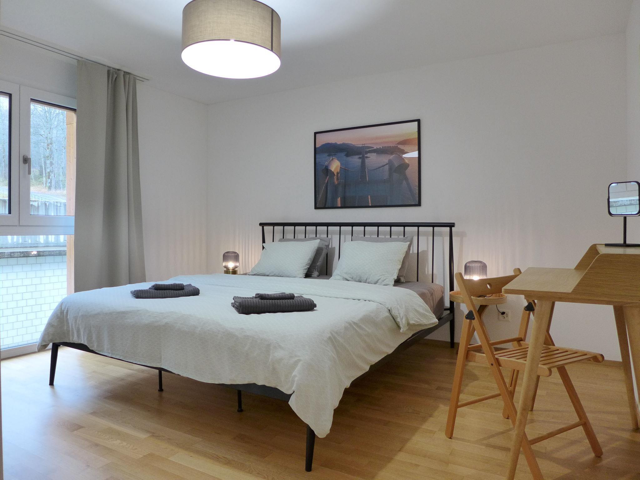 Modern, comfortable apartment block, 3 storeys, built in 2018. On the outskirts, 1.2 km from the centre, in a sunny position on a slope, 20 m from the edge of the forest, south facing position. In the house: lift, storage room for bicycles, storage room for skis, central heating system. Communal covered parking. Shop 1.2 km, grocery 900 m, bus stop "Museum" 200 m, railway station 1.5 km, outdoor swimming pool 1.4 km. Cable car 4 km, gondola lift 1.2 km, skisport facilities 1.2 km, cross country ski track 50 m. Nearby attractions: Oeschinensee, Blausee. Well-known ski regions can easily be reached: Adelboden - Lenk, Nordic Arena Kandersteg. Hiking paths: Sunnbüel - Gemmi, Lötschental. Please note: ski bus (free of charge). Main road close by. Additional accommodations can be booked. Property ref. CH3718.420.2-.6 is situated on the same property.