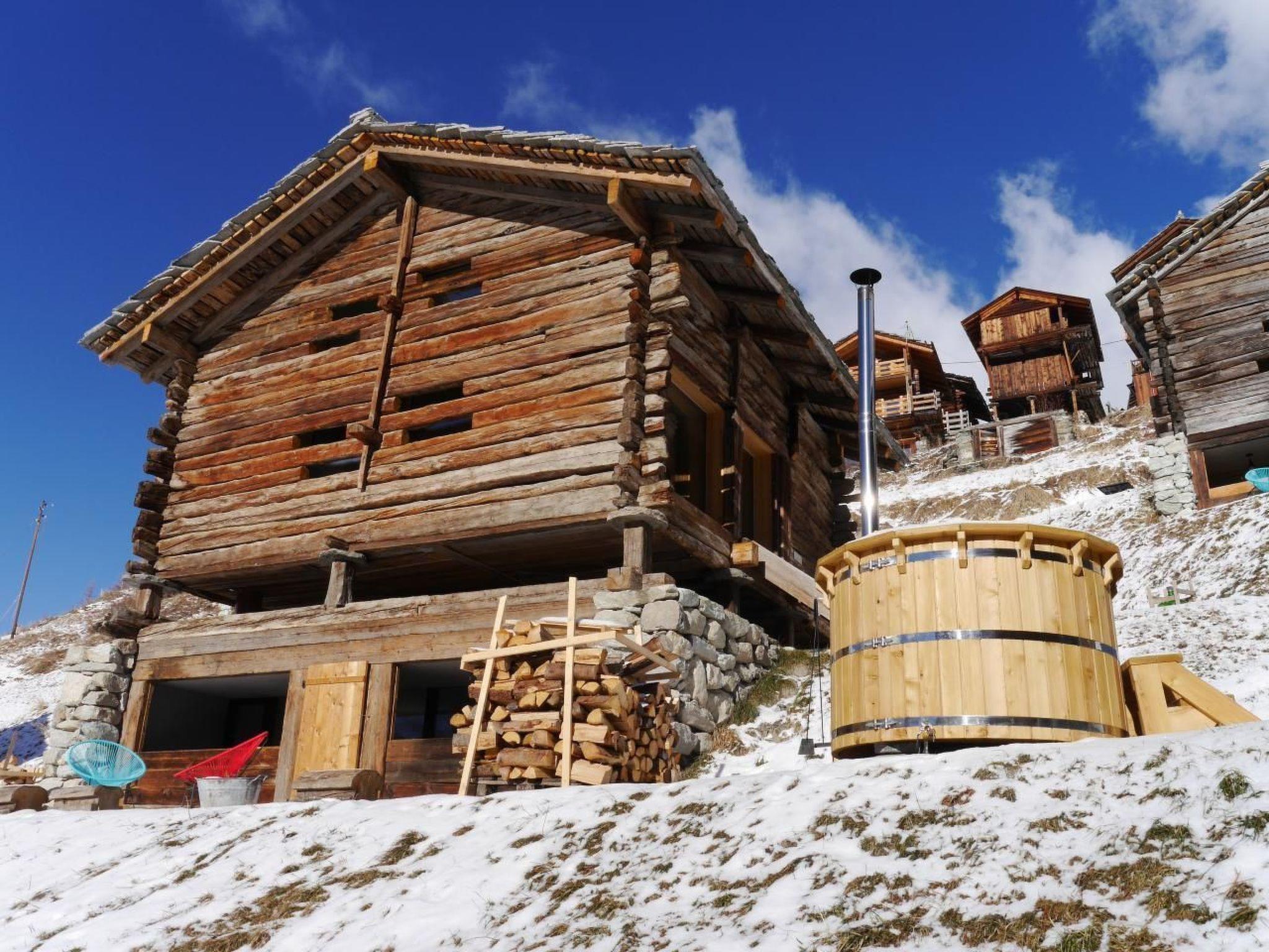 The former barn contains the main living area, with a fitted kitchen, dining table and seating area. The living space also includes the wood-burning cooker, which heats the entire mayen in the spirit of yesteryear. Large windows on the sides offer views over the valley in a resolutely modern atmosphere.