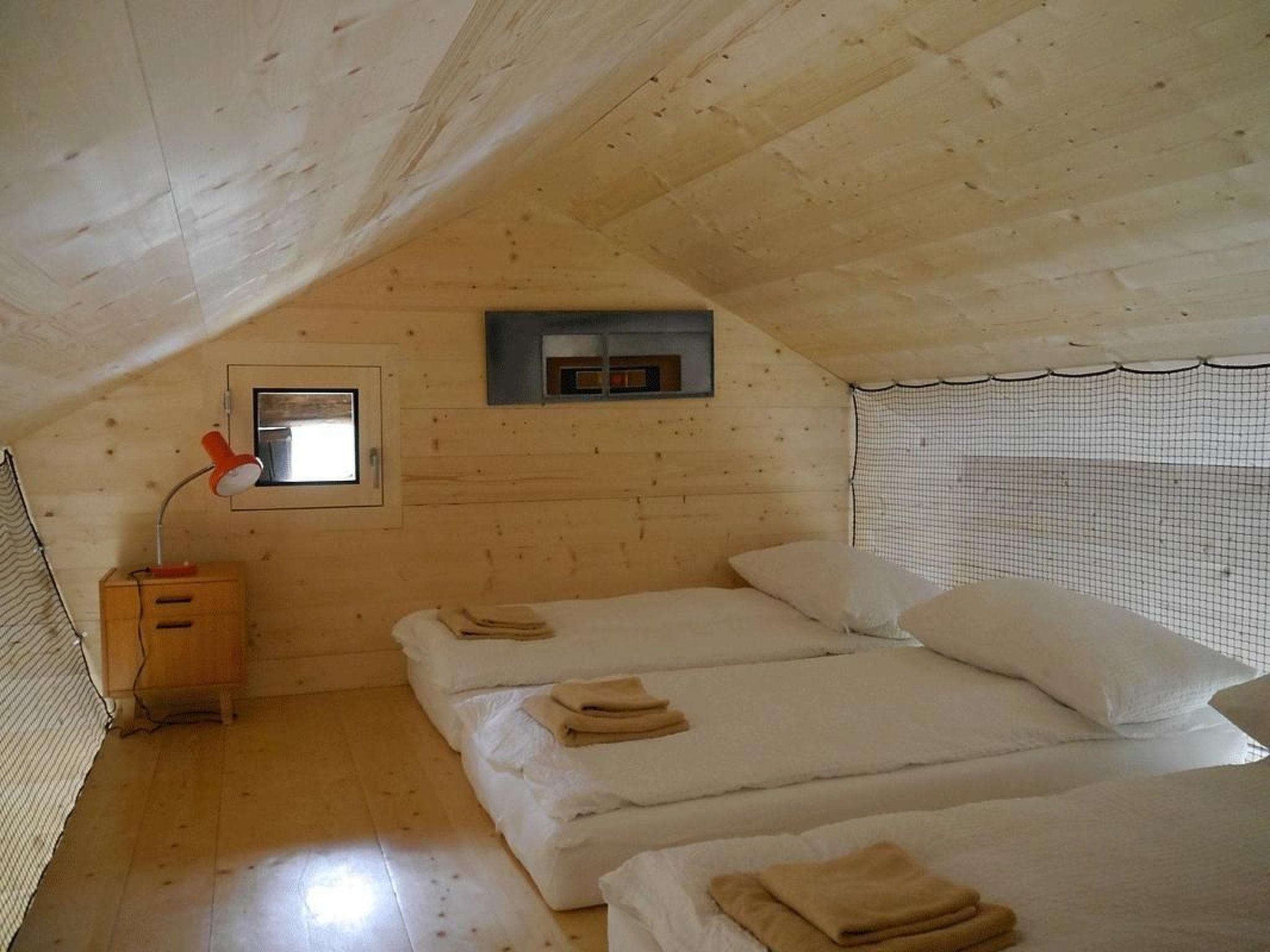 wood and concrete. The living area features a mezzanine that can be used either as a dormitory or a double bedroom, as required.