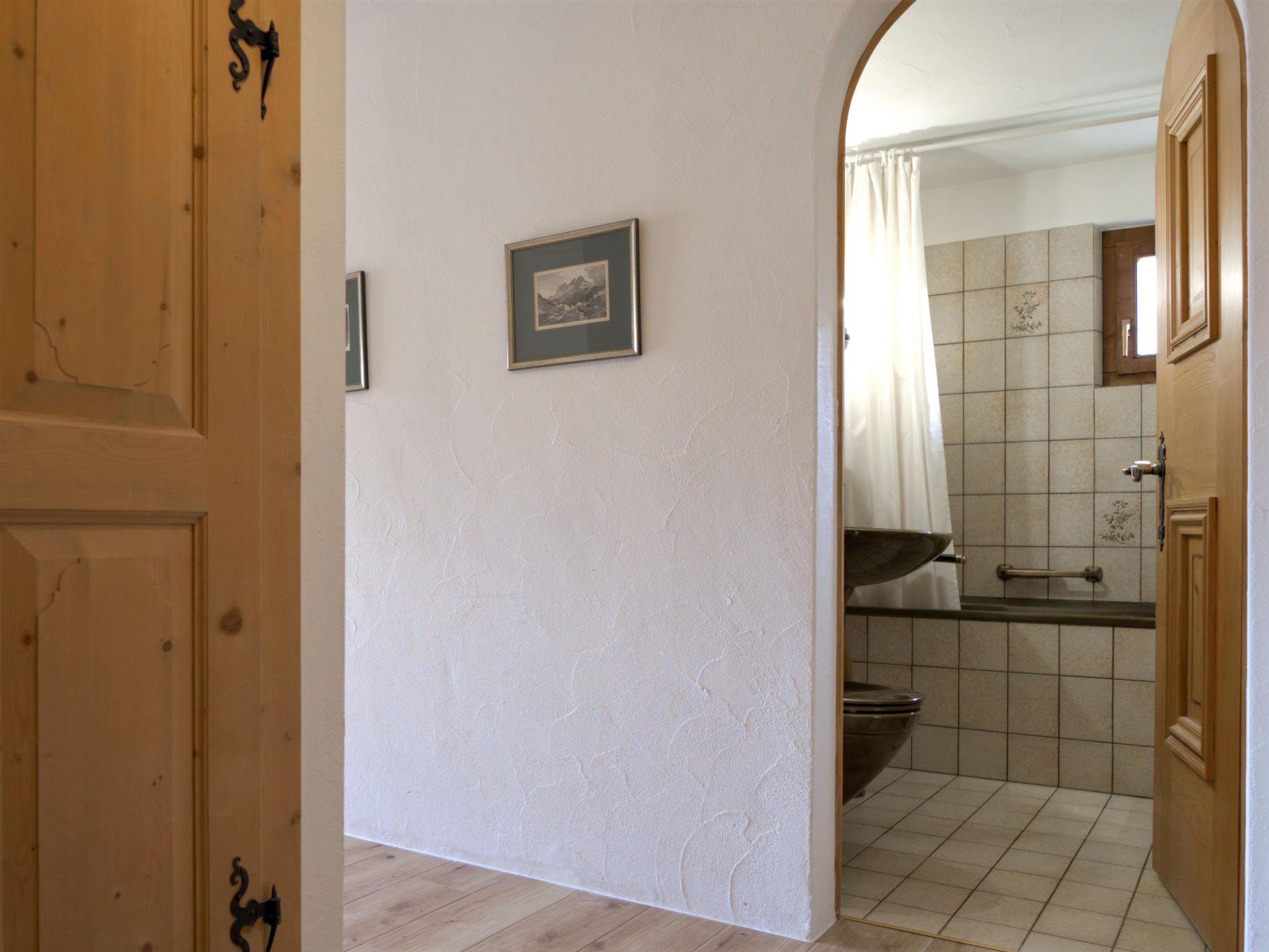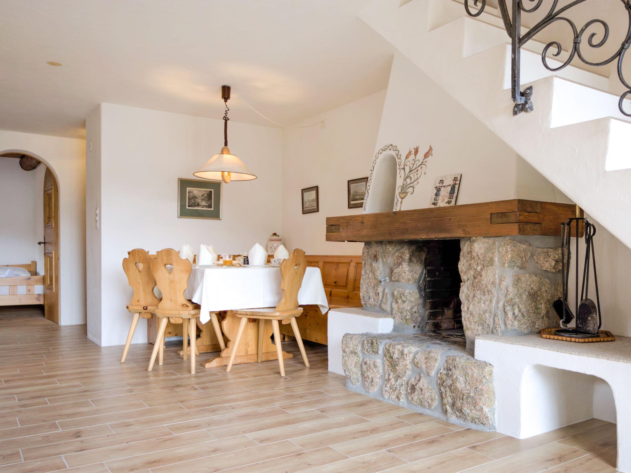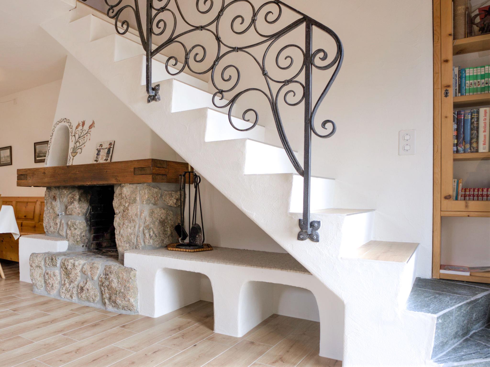 "Chesa Chanella 5", 3-room apartment 85 m2 on 2 levels, on the top floor. Cosy furnishings: living/dining room with open-hearth fireplace, TV and radio. Exit to the balcony, south-west facing position. 1 room with 2 beds (90 cm, length 190 cm). Kitchen (oven, dishwasher, 4 induction hot plates, toaster, kettle, freezer, electric coffee machine, Capsules for coffee machine (Nespresso) extra, fondue Set (cheese)). Bath/WC. Upper floor: (steep stair) open gallery with sloping ceilings with 2 beds (90 cm, length 195 cm). 1 room with 1 french bed (1 x 155 cm, length 200 cm), hand-basin. Sep. WC. View of the mountains. Facilities: hair dryer. Internet (WiFi, free). Garage space n 5, height 225 cm, width 210 cm. Instead of an enclosed bedroom, some sleeping areas are located in an open-plan area (gallery, alcove, etc.).