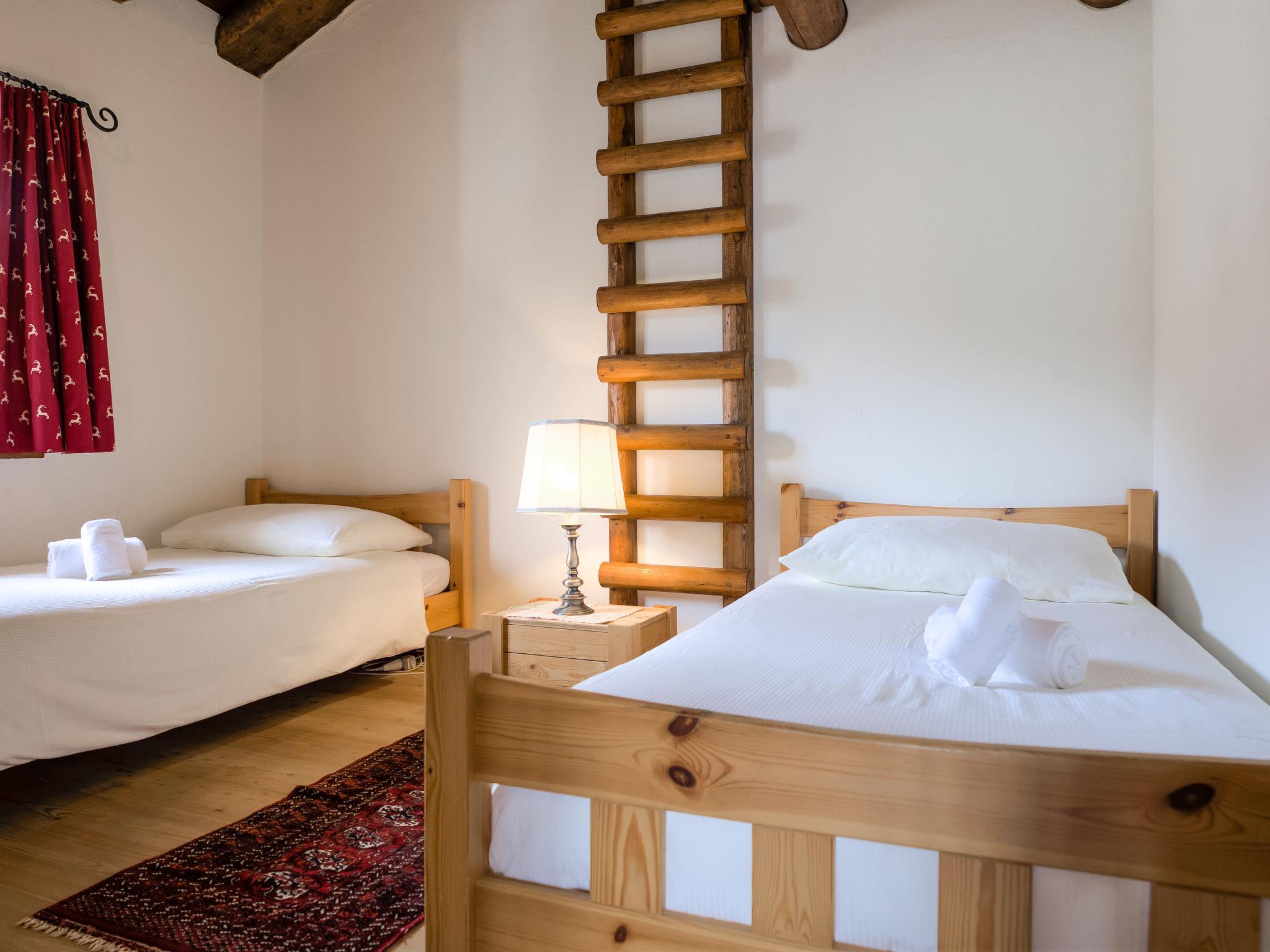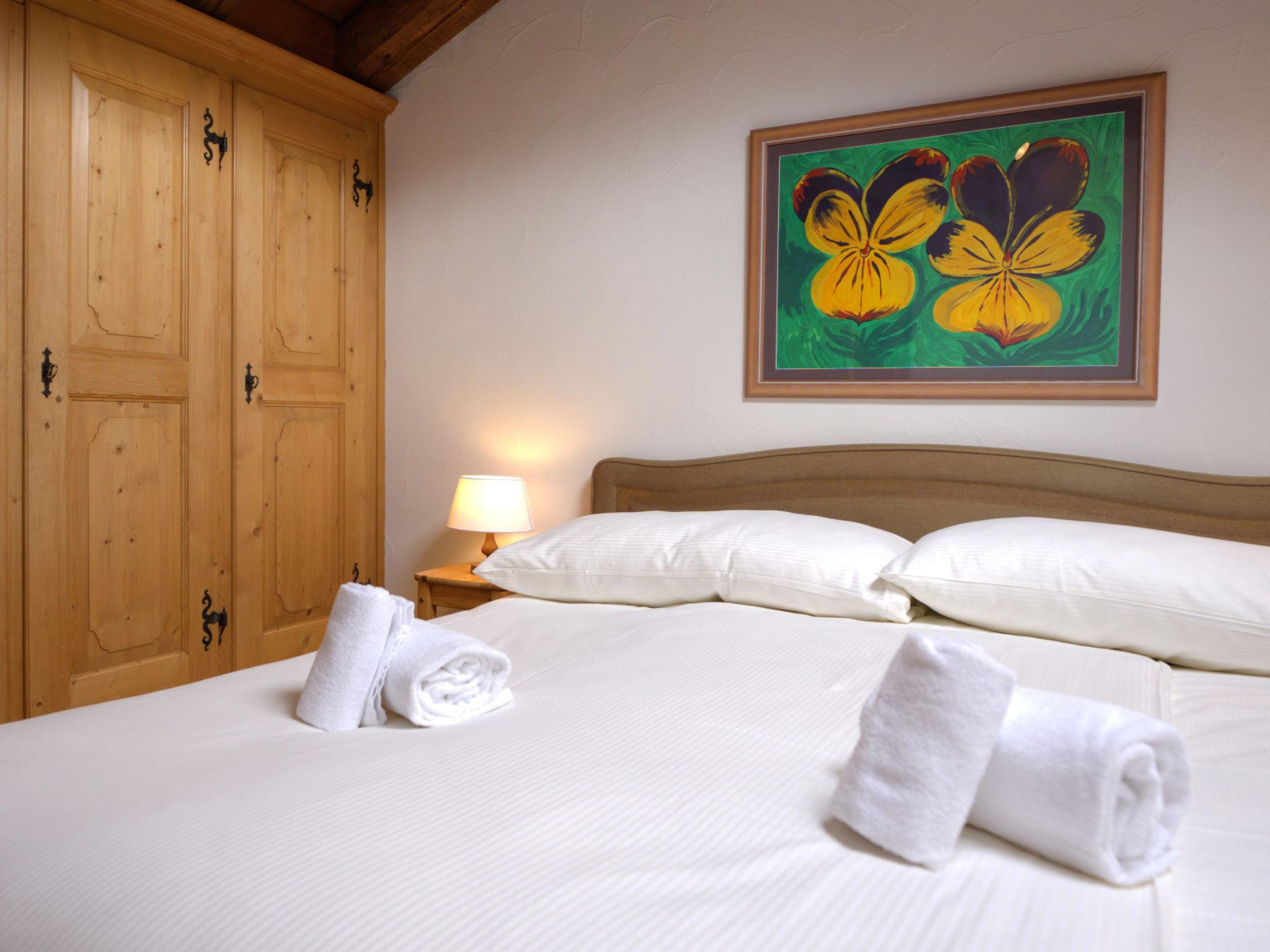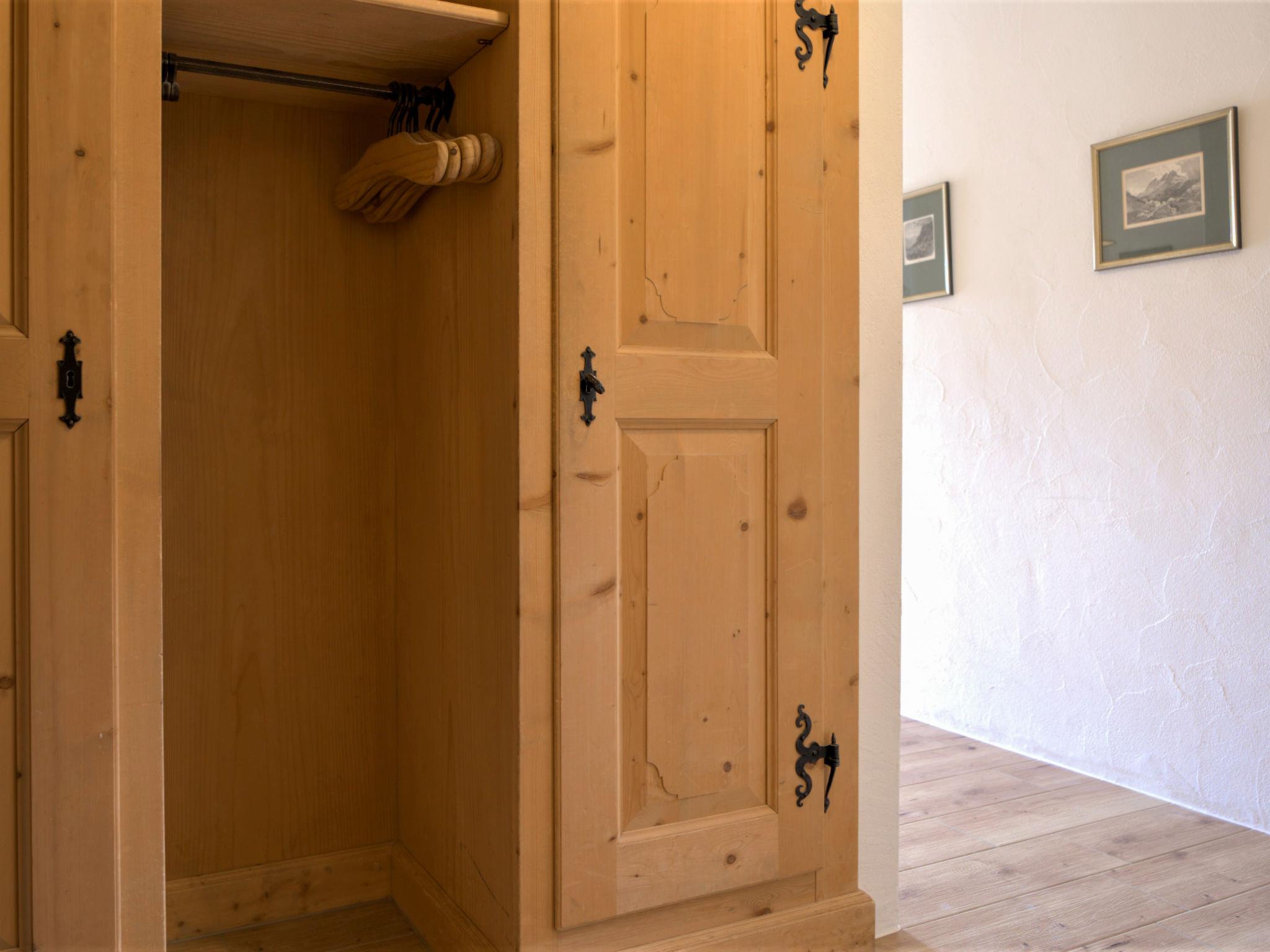 "Chesa Chanella 5", 3-room apartment 85 m2 on 2 levels, on the top floor. Cosy furnishings: living/dining room with open-hearth fireplace, TV and radio. Exit to the balcony, south-west facing position. 1 room with 2 beds (90 cm, length 190 cm). Kitchen (oven, dishwasher, 4 induction hot plates, toaster, kettle, freezer, electric coffee machine, Capsules for coffee machine (Nespresso) extra, fondue Set (cheese)). Bath/WC. Upper floor: (steep stair) open gallery with sloping ceilings with 2 beds (90 cm, length 195 cm). 1 room with 1 french bed (1 x 155 cm, length 200 cm), hand-basin. Sep. WC. View of the mountains. Facilities: hair dryer. Internet (WiFi, free). Garage space n 5, height 225 cm, width 210 cm. Instead of an enclosed bedroom, some sleeping areas are located in an open-plan area (gallery, alcove, etc.).