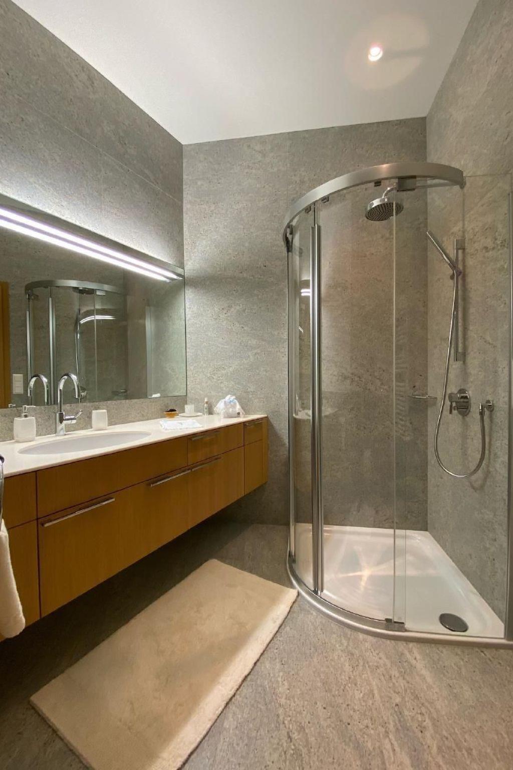 A sunny, modern 4 1/2 room apartment, 110 m² on the third floor of a house with a fantastic view over the valley and Chamues. The house is 330 m from the La-Punt Chamues train station, cross-country skiing trails, the Müsella ski lift can be reached in approx. 10 walking minutes, the next restaurant in approx. 2 minutes.