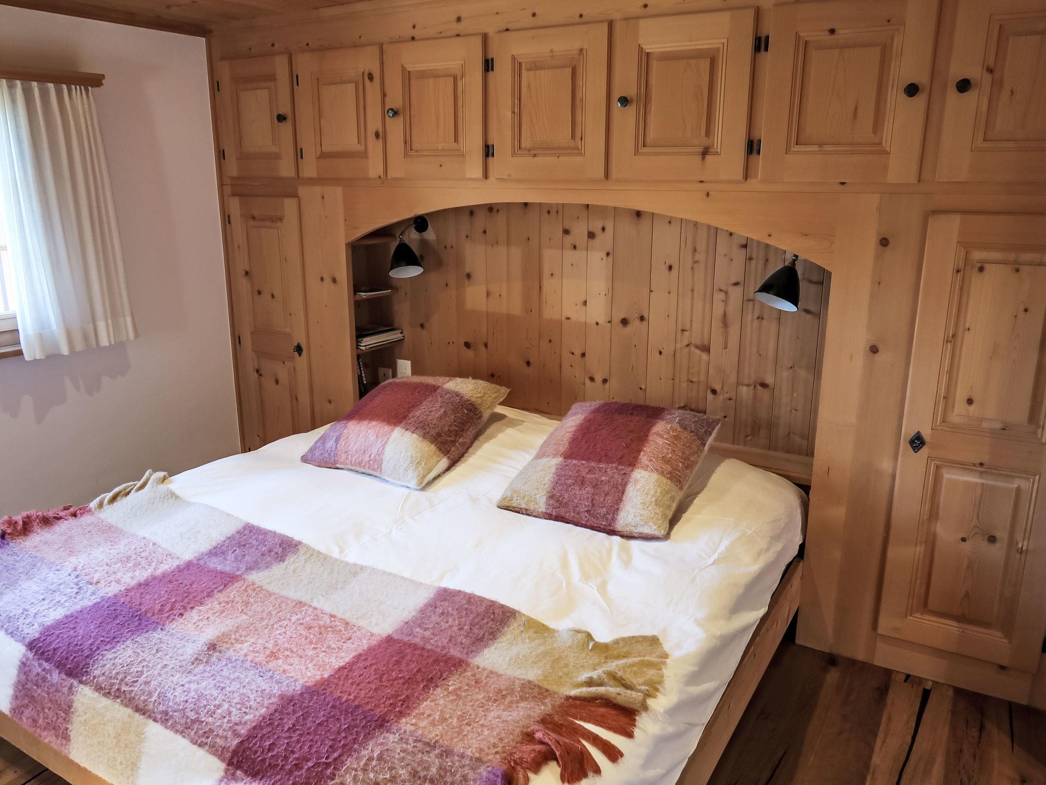4-room apartment 150 m2 on 2 levels. Comfortable and cosy furnishings: living/dining room with open-hearth fireplace (only for decoration). Exit to the balcony. 1 double bedroom with shower/WC. Large, open kitchen (oven, dishwasher, 4 ceramic glass hob hotplates, toaster, kettle, freezer, electric coffee machine, raclette grill, fondue Set (cheese)). Sep. WC. Upper floor: gallery. 1 double bedroom with shower/WC. 1 room with 1 bed and 1 x 2 bunk beds, shower/WC. Balcony 25 m2, south facing position, patio 40 m2. Terrace furniture, balcony furniture, deck chairs (2). Beautiful view of the mountains, the countryside and the resort. Facilities: washing machine, dryer. Internet (WiFi, free). Parking, garage (2 cars) at the house, height 190 cm. Please note: non-smokers only.