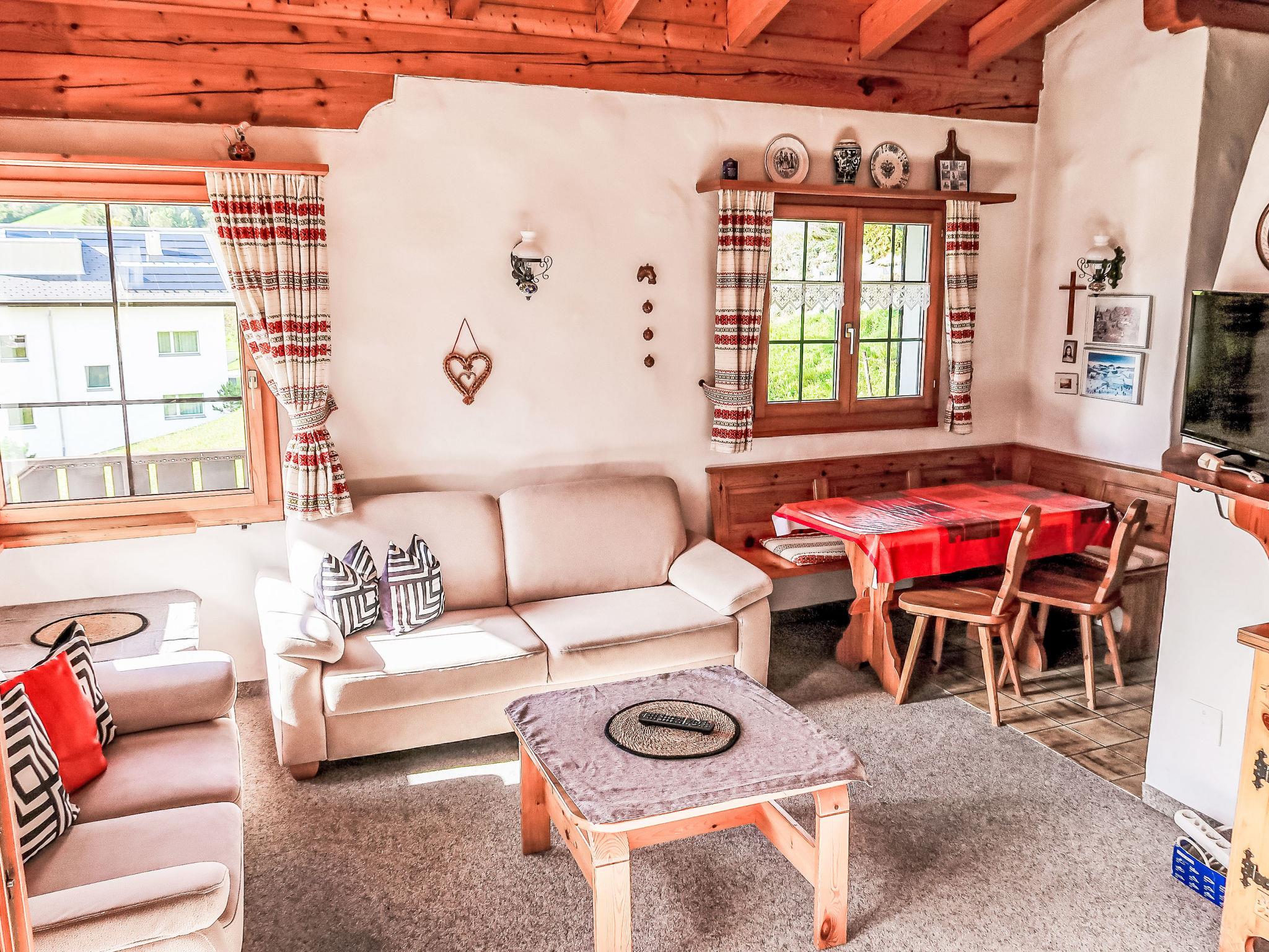 "Muotta Sulegl 4", 3-room apartment 60 m2 on 2 levels on 1st floor, south facing position. Object suitable for 2 adults + 2 children. Rustic and cosy furnishings: living/dining room with open-hearth fireplace (only for decoration), dining nook and satellite TV (flat screen). Exit to the balcony. 1 double bedroom. Open kitchen (3 hot plates, oven, dishwasher, toaster, kettle). Shower/WC. Upper floor: (steep stair), 1 room with sloping ceilings with 2 beds. Underfloor heating. Balcony 15 m2, south facing position. Balcony furniture. Beautiful panoramic view of the mountains, the valley and the countryside. Parking at the house. Please note: non-smokers only.