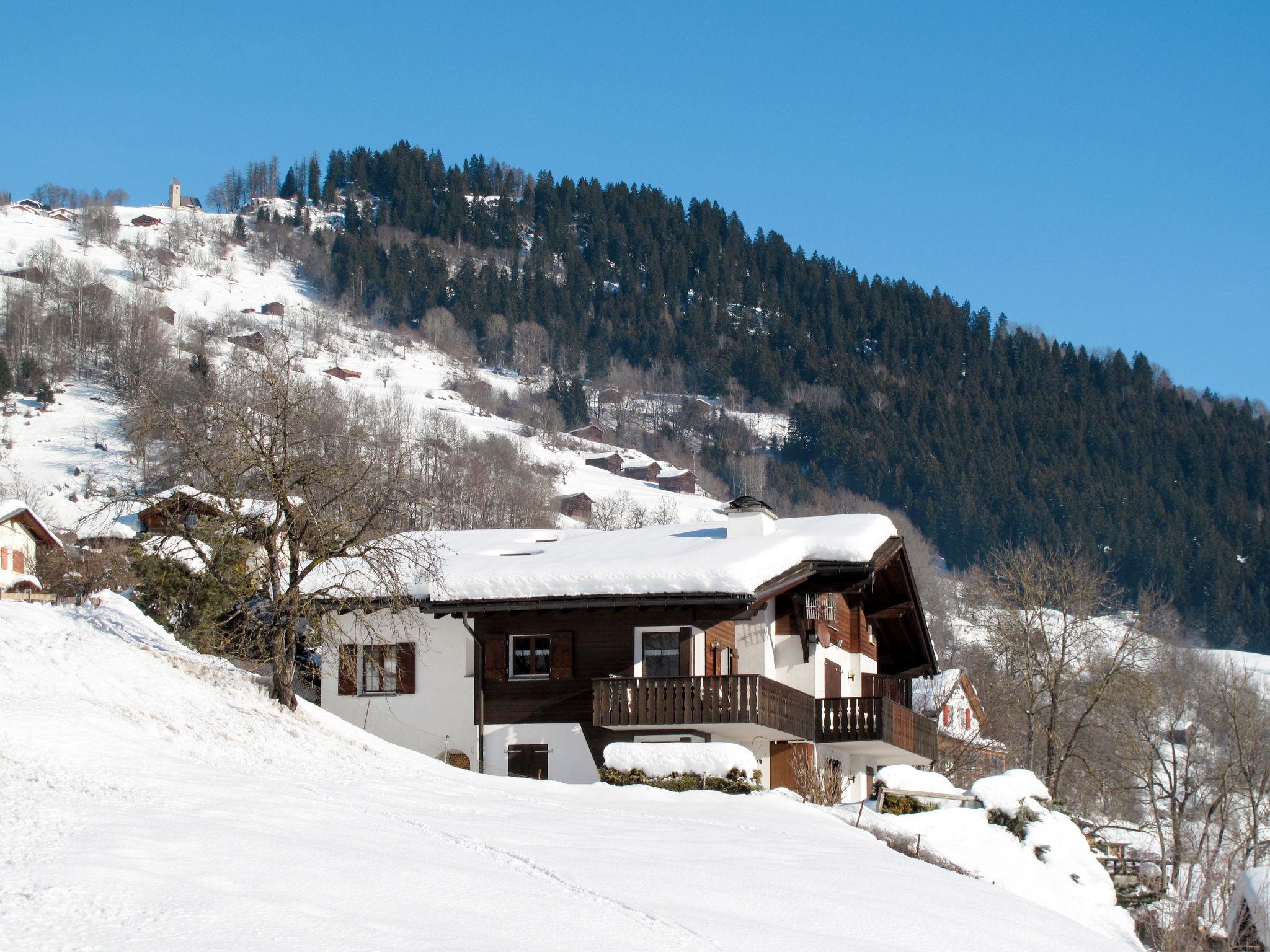 Schluein 4 km from Laax: Cosy apartment house "Muotta Sulegl", 770 m a.s.l., 3 storeys. In the resort 400 m from the centre of Schluein, in a quiet, sunny position on a slope, 6 km from the skiing area. In the house: sauna (extra). Storage room for skis, central heating system. Motor access to the house. Stepped path to the house. Parking at the house. Shop 2.8 km, supermarket 2 km, restaurant 400 m, bus stop "Schluein, vitg" 250 m, railway station "Ilanz" 2.8 km. Golf course (9 hole) 5 km, cable car 6 km, ski lift 6 km, chair lift 6 km, skisport facilities 6 km, slopes 6 km, ski bus stop 350 m, ski school 6 km, sled run 6 km, cross country ski track 5 km. Nearby attractions: Rheinschlucht 6 km. Well-known ski regions can easily be reached: Weisse Arena Flims/Laax 6 km. Well-known lakes can easily be reached: Caumasee 10 km.