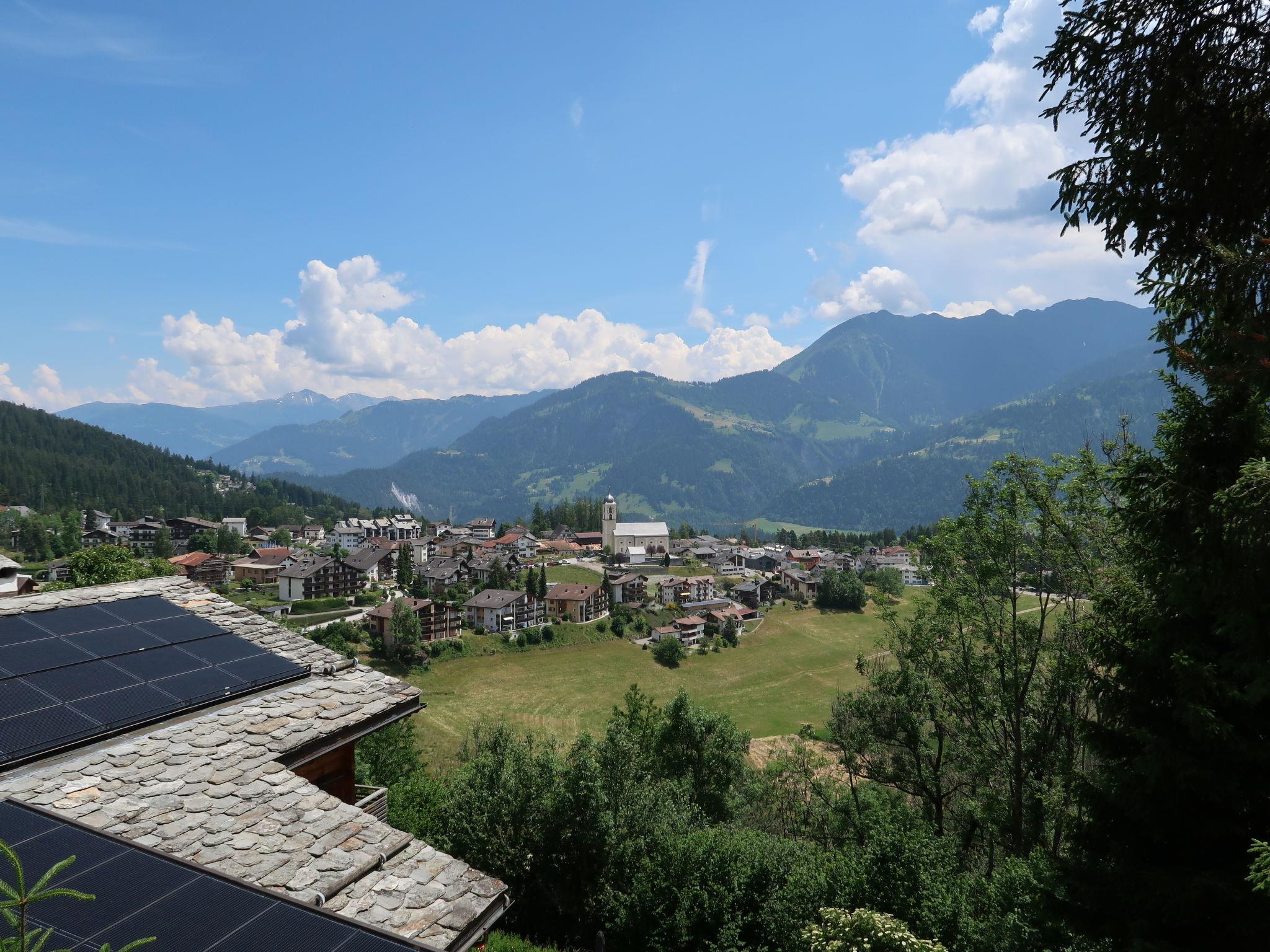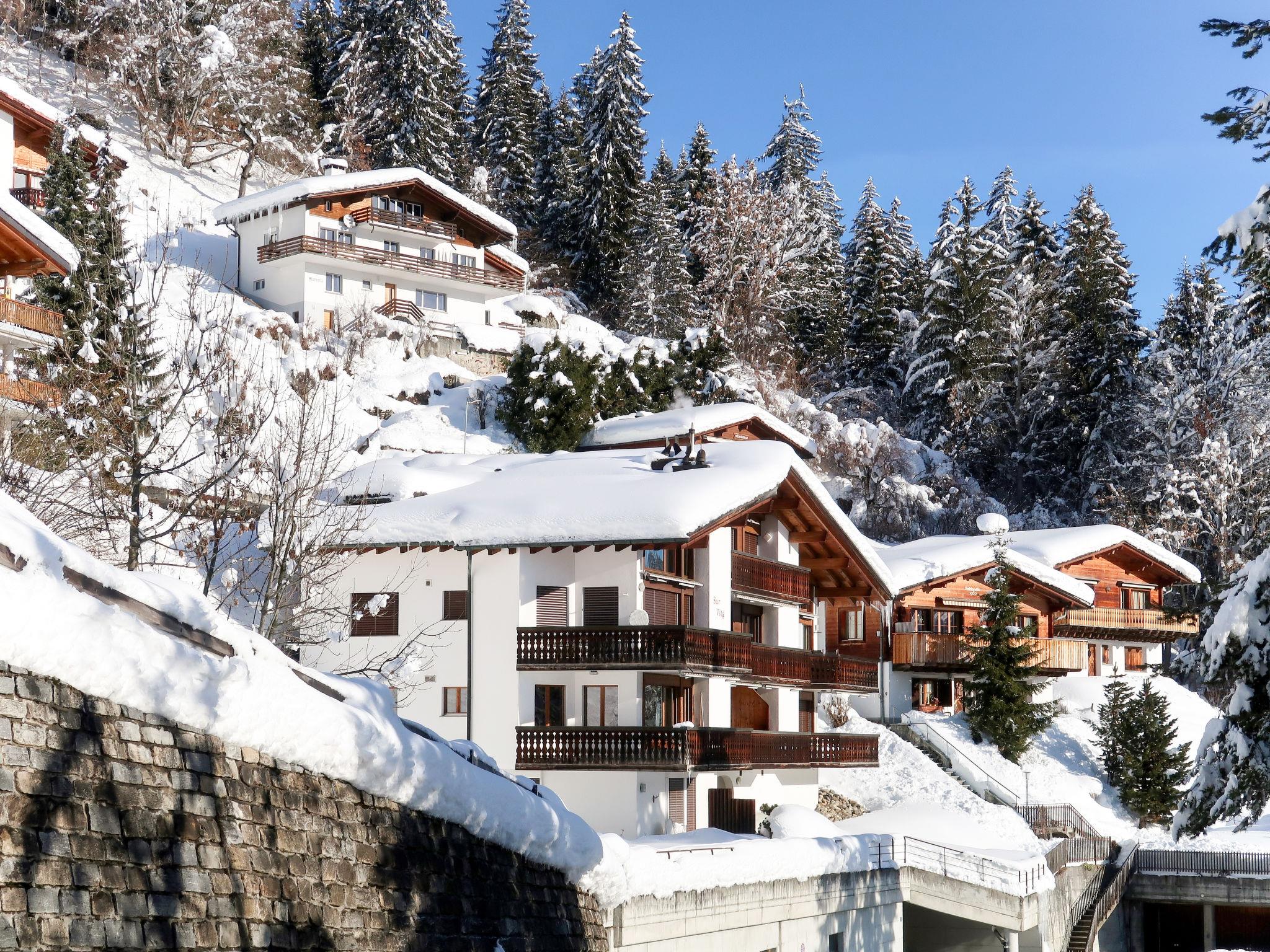 Cosy apartment house "Sur Vitg", 1'020 m a.s.l., 4 storeys. 500 m from the centre of Laax, on the outskirts, 6 km from the centre of Ilanz, in a quiet, sunny, elevated position on a slope, 500 m from the lake, 2 km from the skiing area. In the house: lift, storage room for skis, central heating system, washing machine, tumble dryer (for shared use). Motor access to the house. Communal covered parking at the house. Grocery, restaurant, bakery 500 m, bus stop "Laax GR, Fau" 100 m, railway station "Ilanz" 6 km, indoor swimming pool, bathing lake 500 m. Golf course (18 hole) 3 km, cable car 2 km, ski lift 2 km, chair lift 2 km, skisport facilities 2 km, slopes 2 km, ski bus stop 150 m, ski school 2 km, sled run 2 km, cross country ski track 2 km, ice rink, children's playground 500 m. Nearby attractions: Rheinschlucht 3 km. Well-known ski regions can easily be reached: Weisse Arena Flims/laax 2 km. Well-known lakes can easily be reached: Laaxersee 500 m, Caumasee 5 km. The house is on a side street towards Falera (dead end).