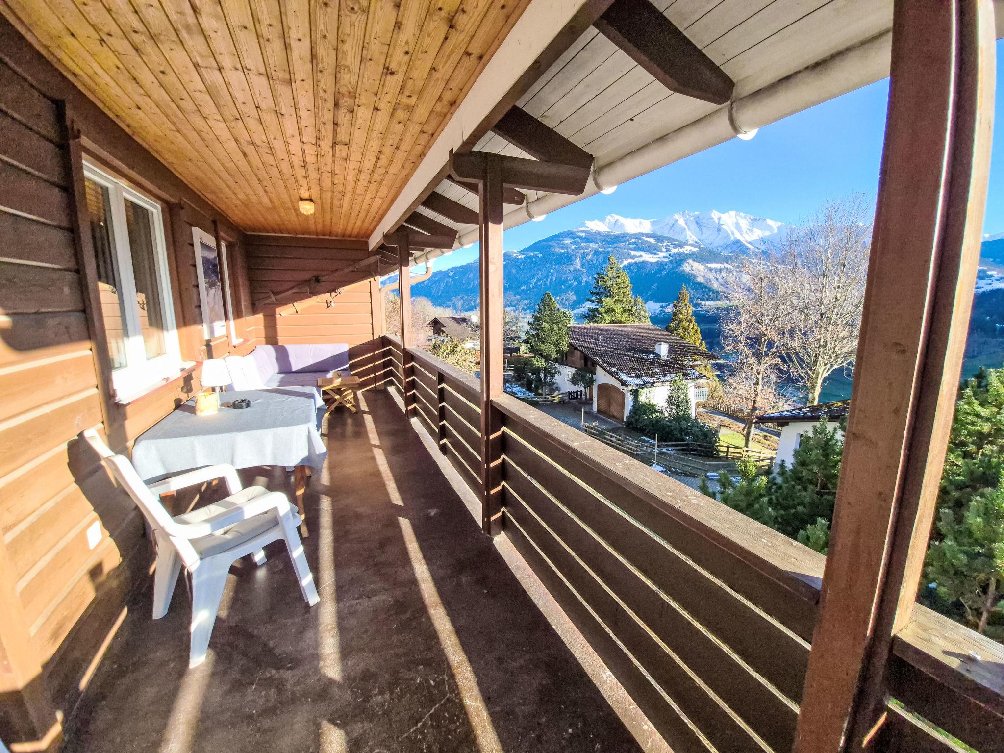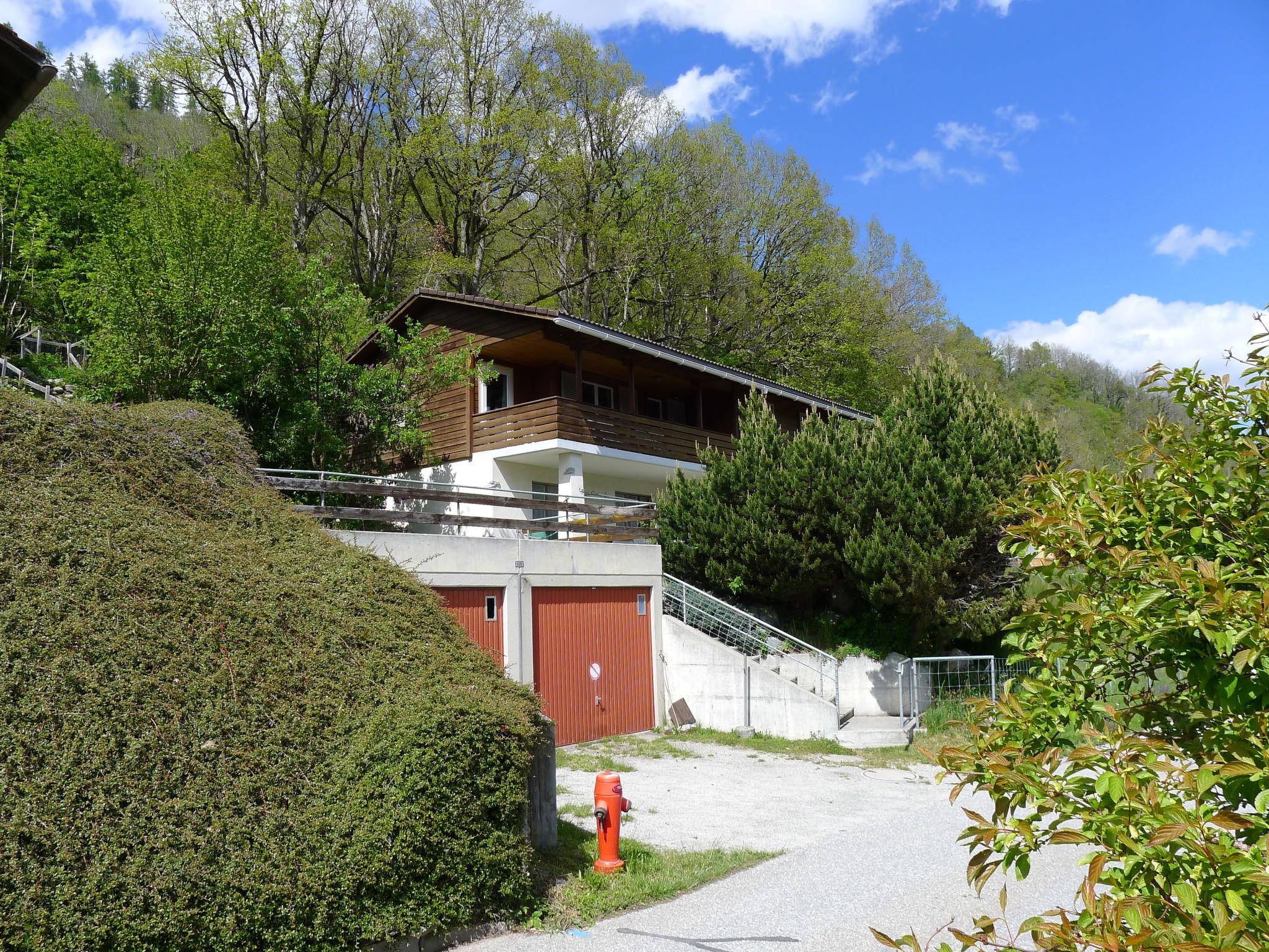 Tischinas 10 km from Laax: Child friendly 2-family house "Crap Grisch", 1'155 m a.s.l.. Below Ruschein, in the district of Tischinas 2 km from the centre of Ruschein, 2 km from the centre of Ilanz, 6 km from the centre of Laax, on a slope, 8 km from the skiing area, in a cul-de-sac. Private: property (fenced), terraced garden with meadow. In the house: central heating system. Motor access to the house (mountain road). 4x4 car recommended in winter. Stepped path to the house. Parking at the house, single garage at the house. Shop 2 km, supermarket 2 km, bus stop 200 m, railway station "Ilanz" 2 km, outdoor swimming pool 2 km. Golf course (18 hole) 3 km, ski lift 8 km, ski school 8 km. Please note: car recommended. E-car charging station 3km away (ALDI Ilanz, 3 HPC fast chargers with 6 charging points).